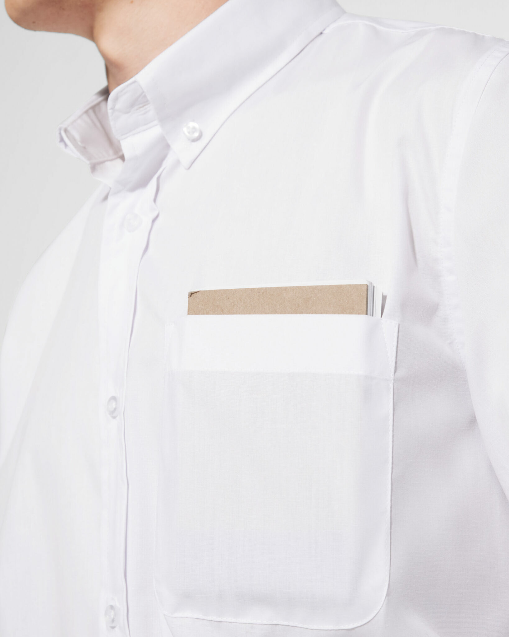 · Cuello clásico almidonado de 1 botón y bolsillo frontal izquierdo.