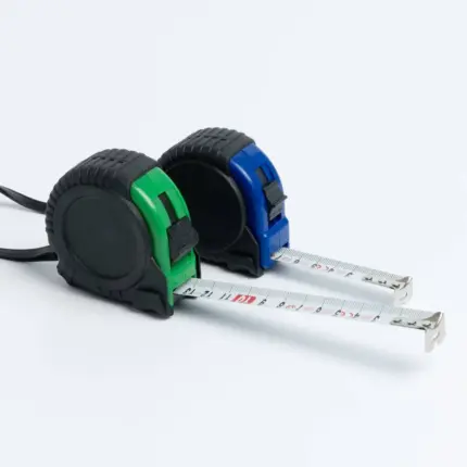 Fléxometro de 3 metros homologado, con mecanismo de bloqueo y cuchilla metálica. Cuerpo en color con funda de goma, clip metálico y cinta de transporte.