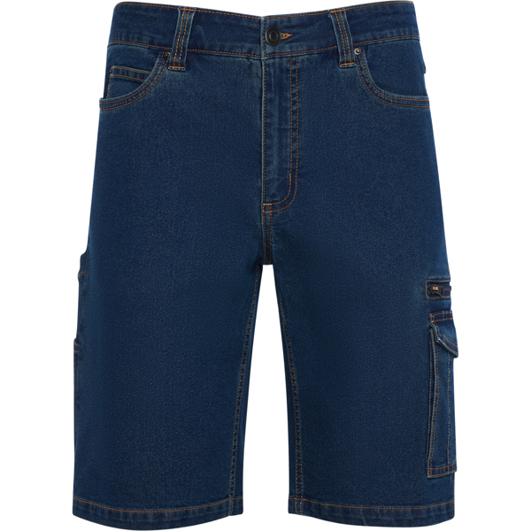 Bermuda vaquera multibolsillos.· Tejido resistente y stretch.· Cinturilla con trabillas.· Dos bolsillos frontales a la cadera con bolsillo monedero en el derecho.· Dos bolsillos traseros.· Un bolsillo cargo con tapeta y cierre de velcro en pierna derecha.· Un bolsillo integrado con cremallera sobre el cargo.· Un bolsillo alargado multiusos en pierna izquierda.· Etiquetado Roly WRK exterior.