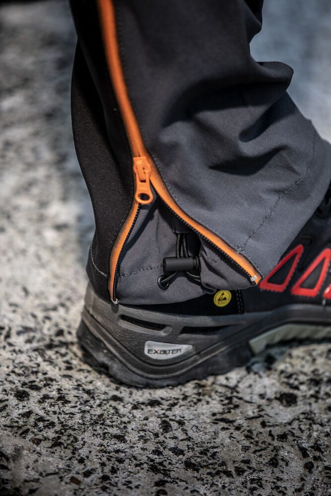 Pantalones con la máxima libertad de movimiento y confort. Ajuste moderno. Elástico en muslos y rodillas, ventilación con cremalleras a lo largo de ambas piernas y en cintura. Bolsillos izquierdos para herramientas y bolígrafos y otro para móvil con