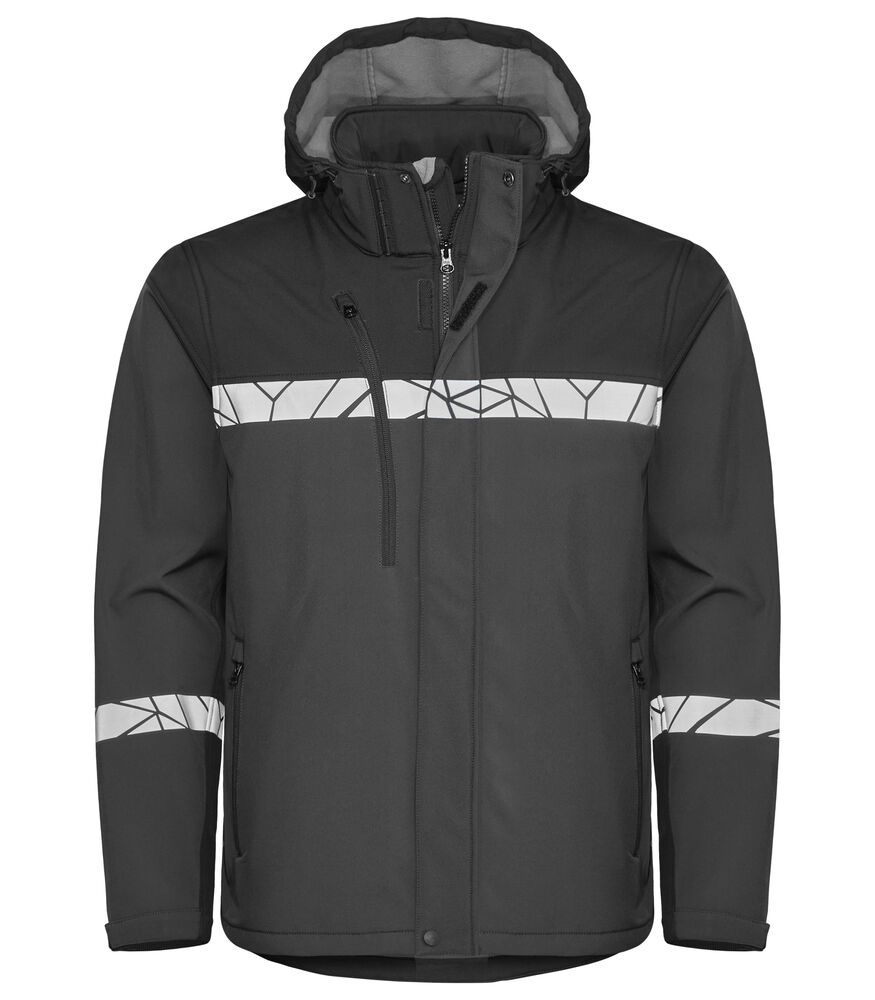Chaqueta funcional en material softshell repelente al viento y al agua, la cremallera frontal está cubierta con una solapa para evitar corrientes de aire y filtraciones de agua. Bolsillo en el pecho en el lado derecho con soporte interno para sujetar la tarjeta de identificación, también bolsillos laterales en ambos lados con cierre de cremallera. Bolsillos interiores abiertos. Espalda alargada. Capucha desmontable, ajustable con cordón. Puños ajustables con velcro y cintura ajustable con cordón. Bolsillo para chip de lavandería en la costura lateral izquierda interior.