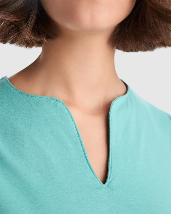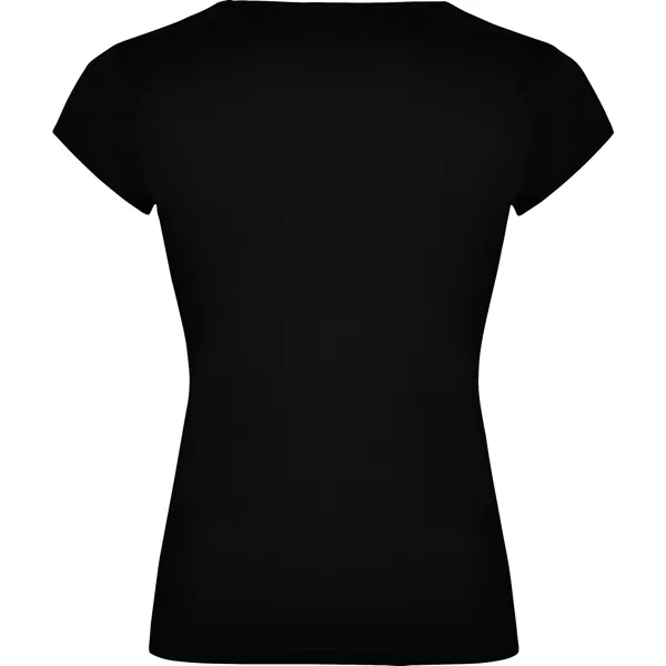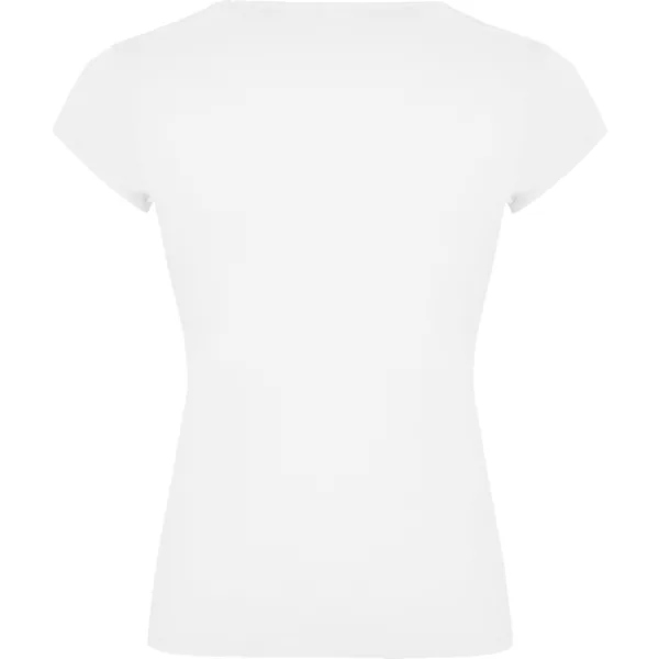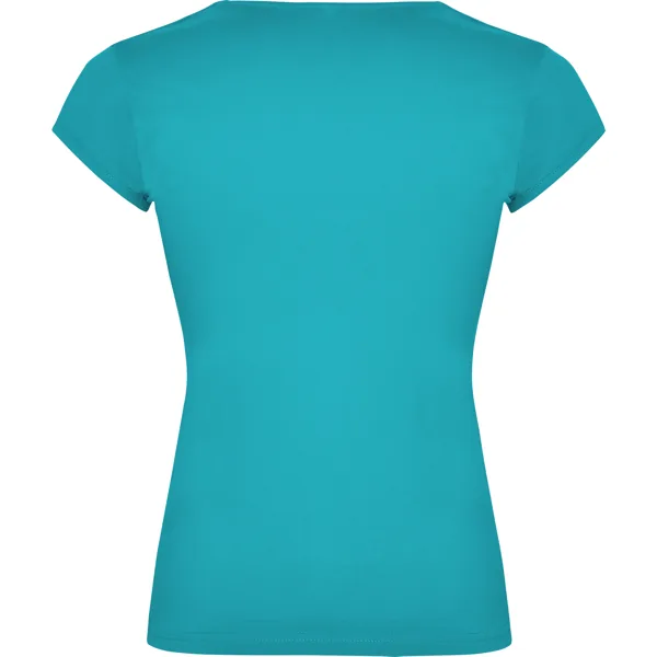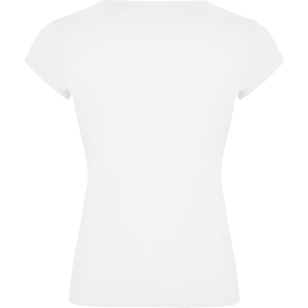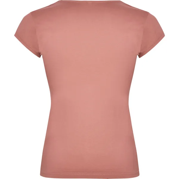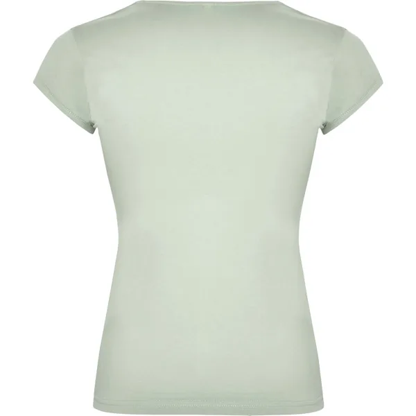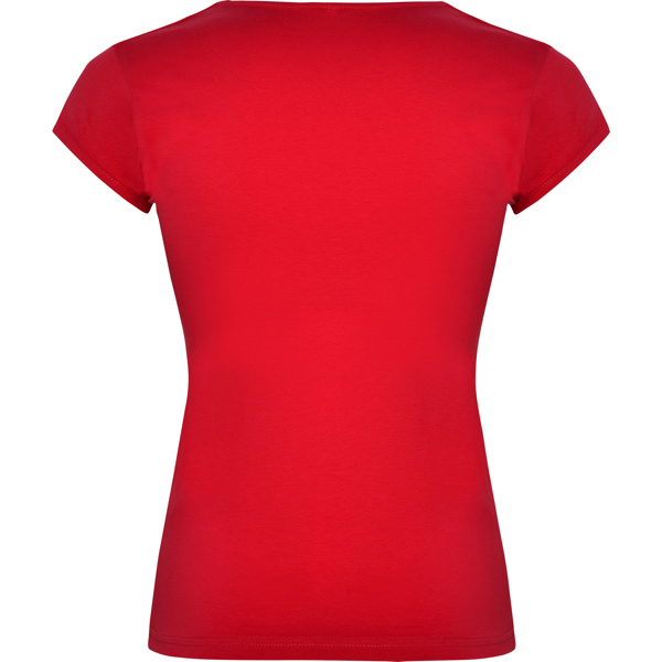 Camiseta de manga corta entallada en cintura. Algodón peinado. Escote entretelado en V. Ribete en mangas del mismo tejido al tono. Cubrecosturas en cuello del mismo tejido.