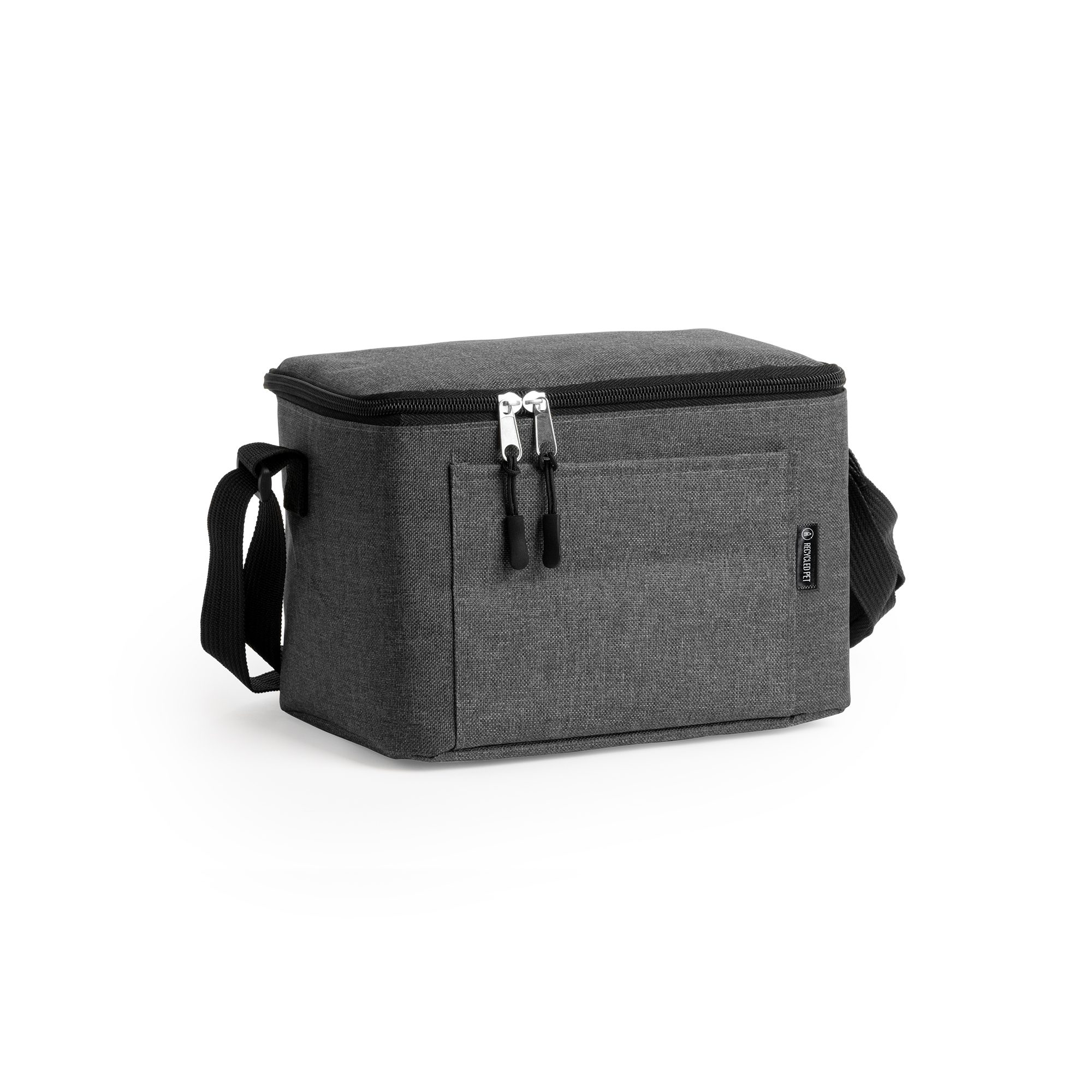 Nevera de poliéster reciclado RPET con diseño vigoré, una opción perfecta para el transporte de alimentos y bebidas combinando funcionalidad y sostenibilidad. Con un bolsillo frontal para el transporte de objetos de menor tamaño, e interior isotérmico, para mantener en perfecto estado tu comida o bebida y llevarla donde quieras. Cuenta, además, con cinta ajustable para mayor comodidad en su transporte.
