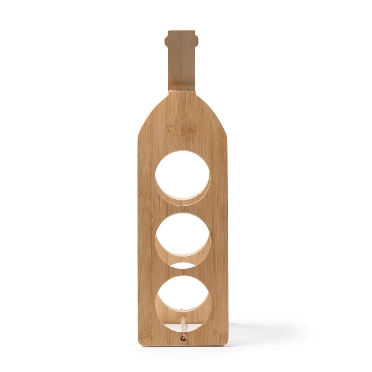 El botellero elaborado con bambú es un accesorio práctico y estético para exhibir y almacenar tus botellas de forma segura. Con capacidad para 3 botellas, este botellero te permite organizar y mostrar tus bebidas favoritas de manera elegante. Su diseño compacto combina funcionalidad y naturalidad. Además, se puede plegar, pudiéndose guardar con mayor facilidad.