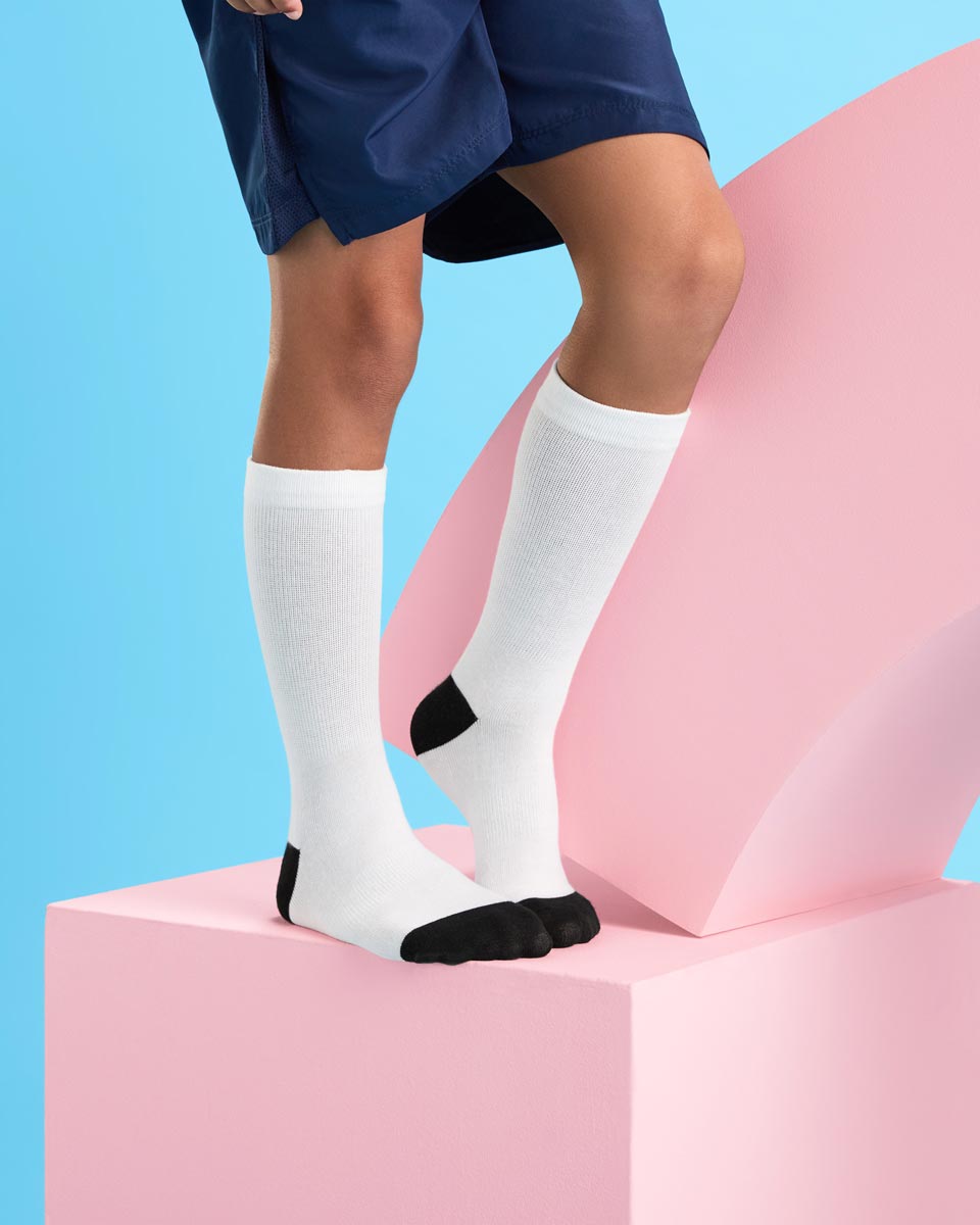 Calcetín media caña sublimable. Talón y puntera en color negro. Tejido tacto algodón.