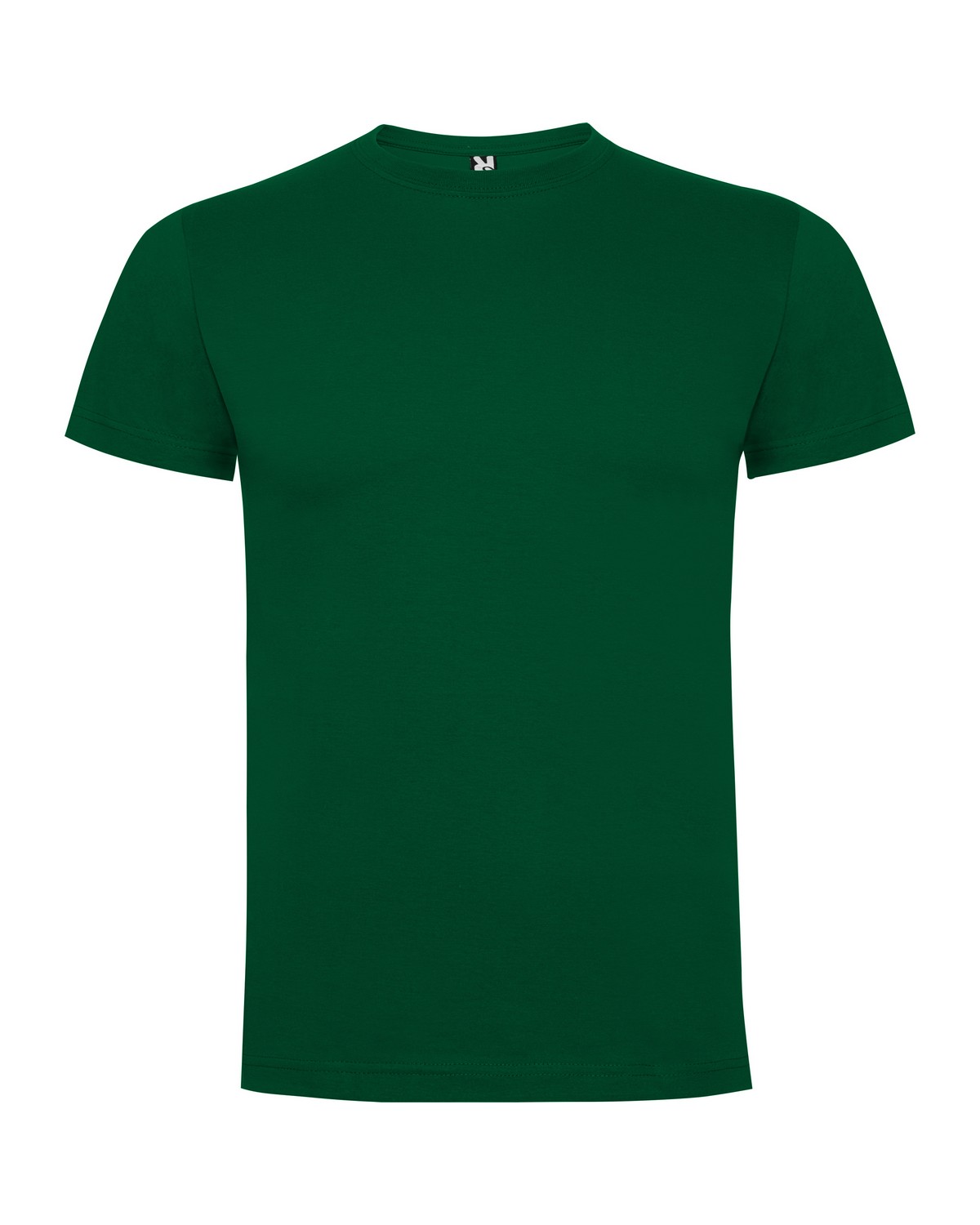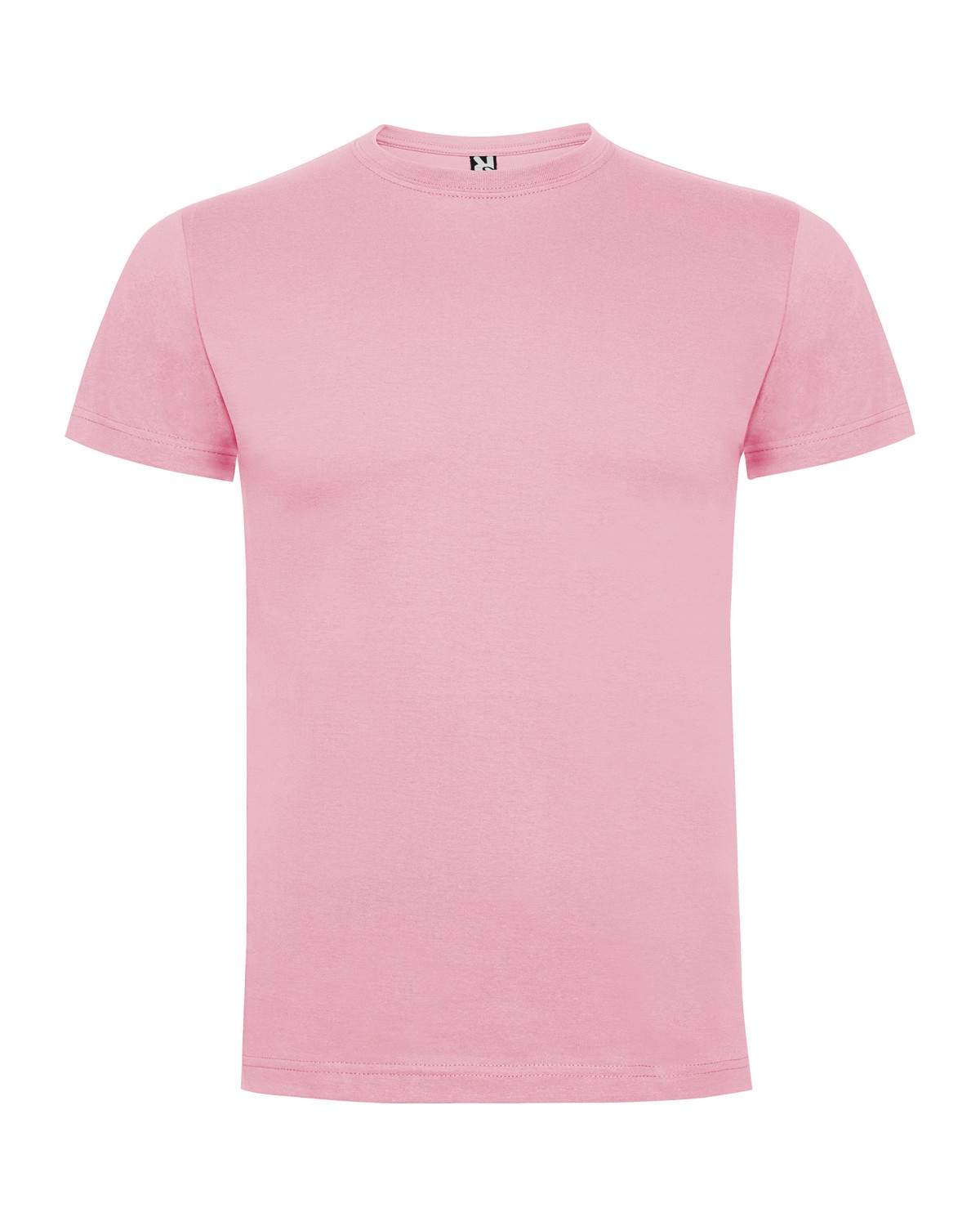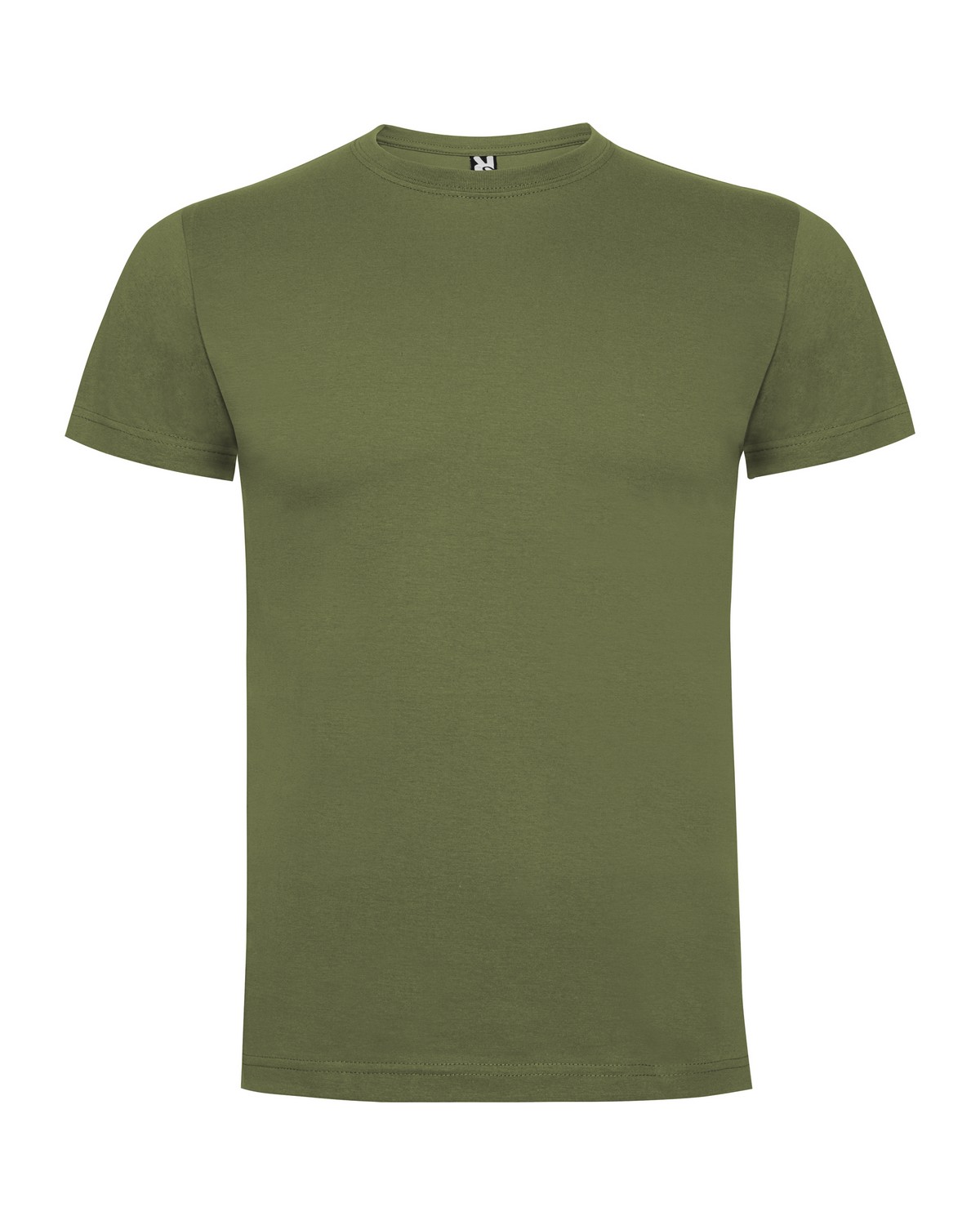 Camiseta de manga corta. Cuello redondo de 4 capas en canalé 1×1 con cubrecosturas de hombro a hombro. Costuras laterales.