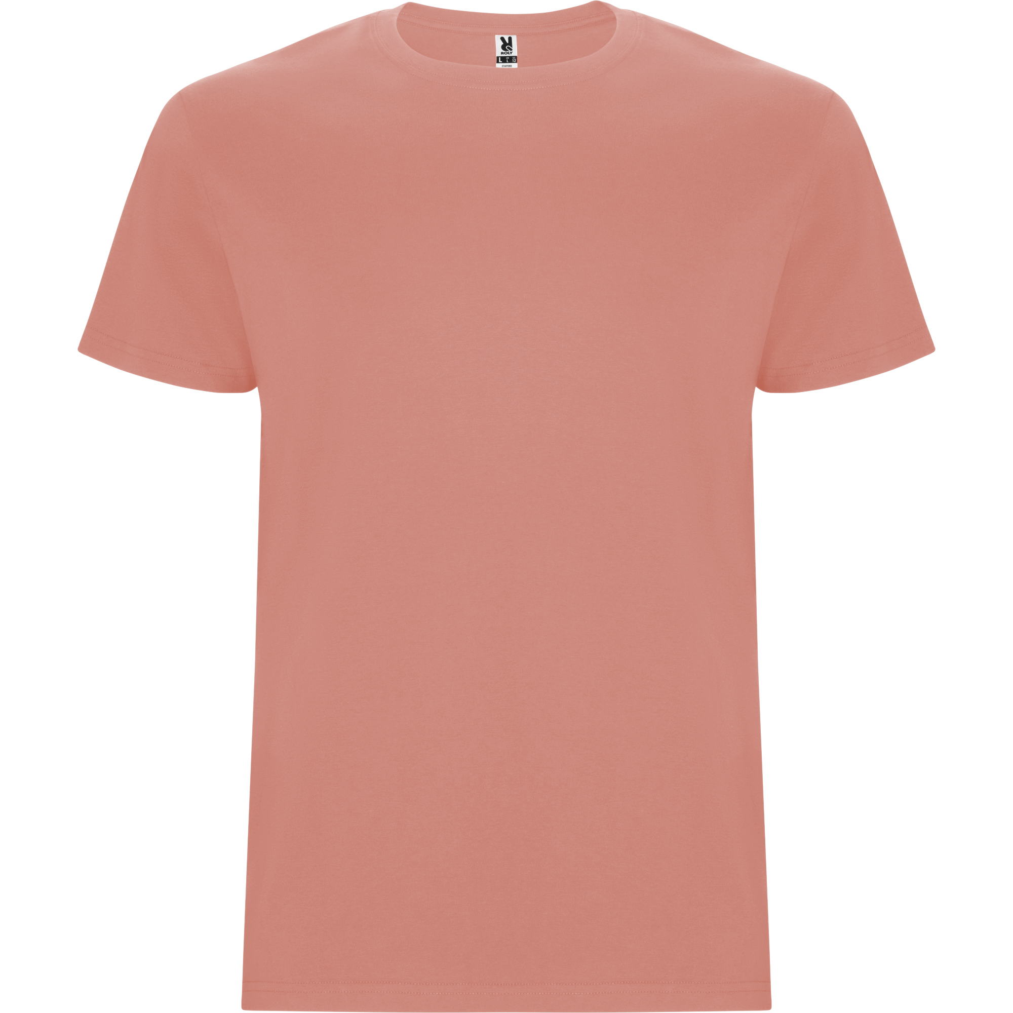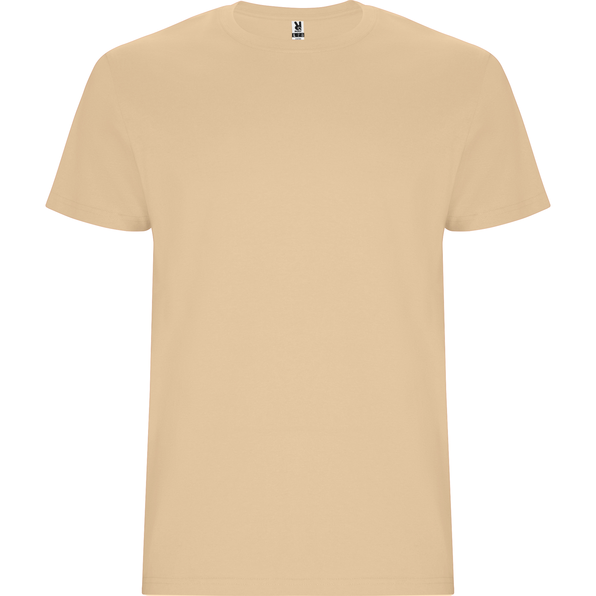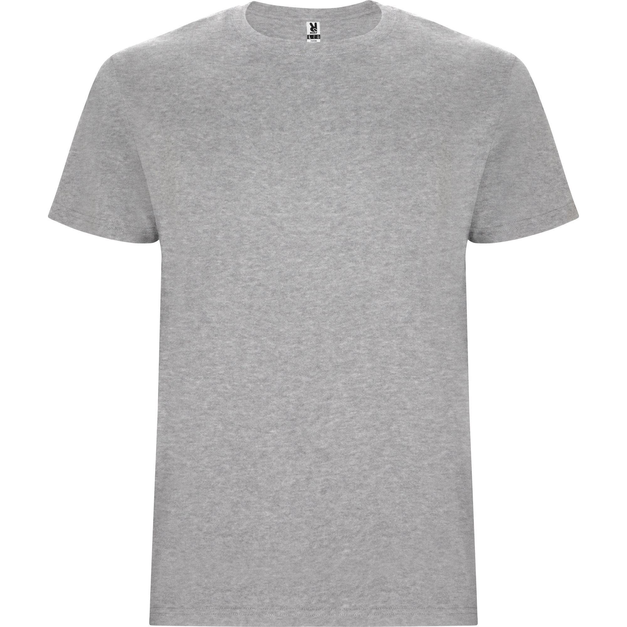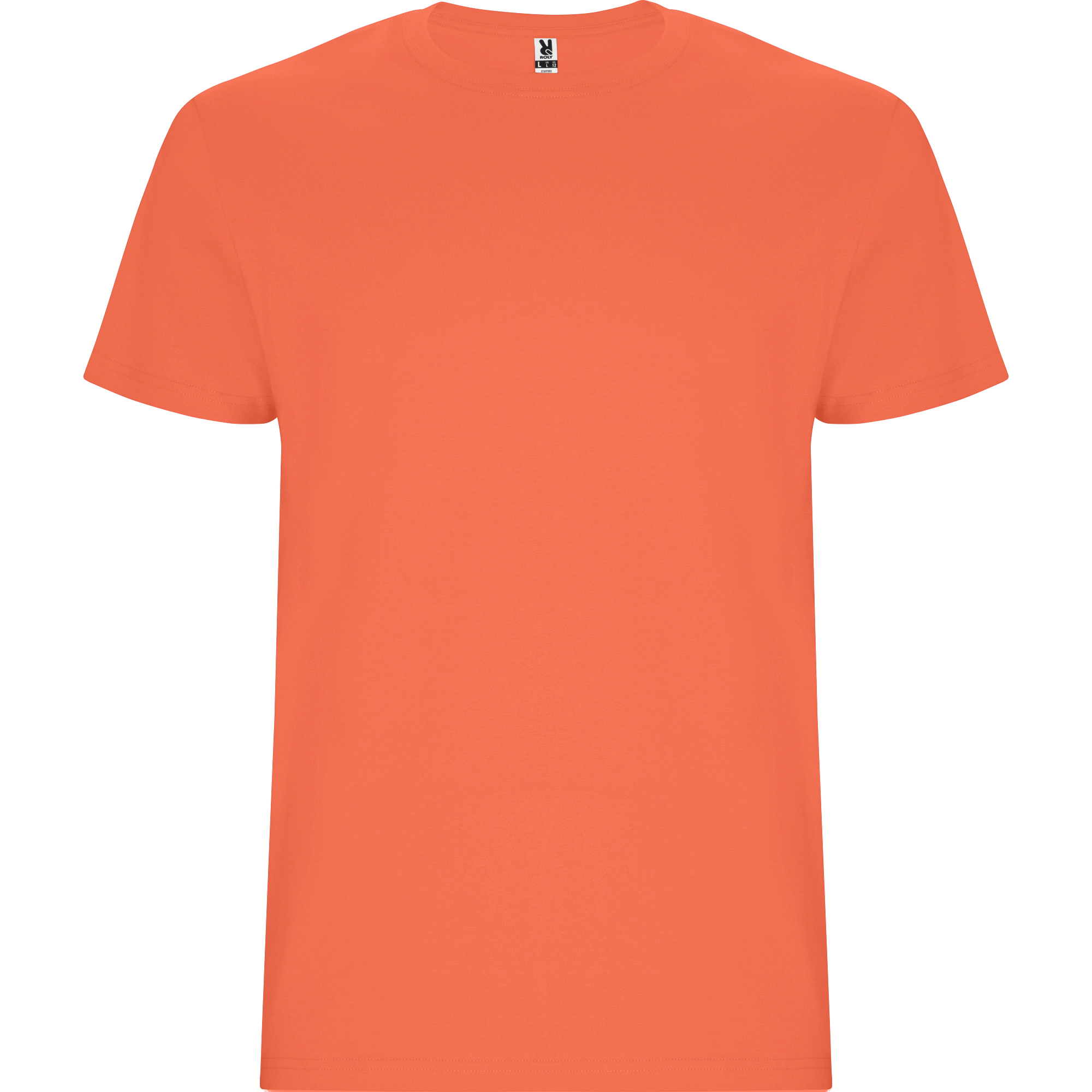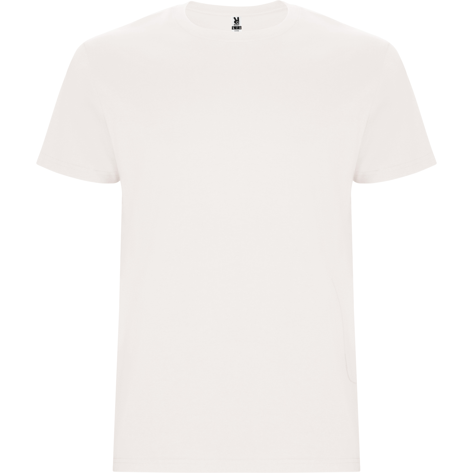 Camiseta tubular de manga corta. Cuello redondo con elastano. Costuras laterales en tallas de niño.