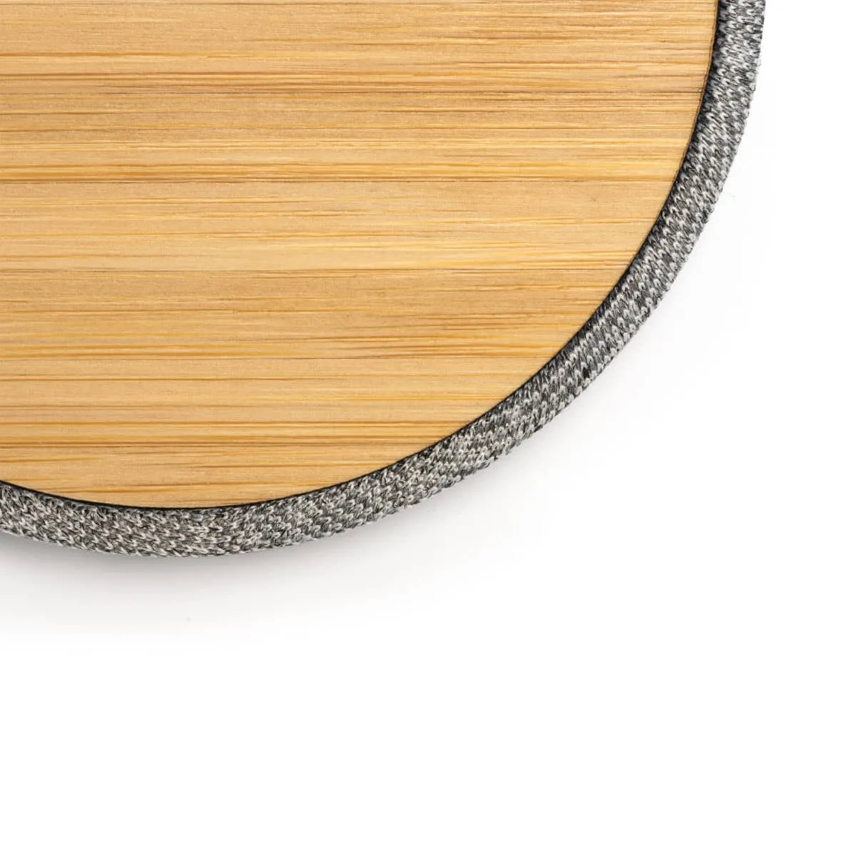 PRODUCTO QUE SE DESCATALOGARÁ CUANDO SE AGOTEN LAS EXISTENCIAS – Cargador inalámbrico con cuerpo elaborado en tejido RPET y superficie de carga en bambú. Compatible con dispositivos provistos de tecnología de carga inalámbrica. Potencia de carga 10W. Cable de conexión tipo C incluido.