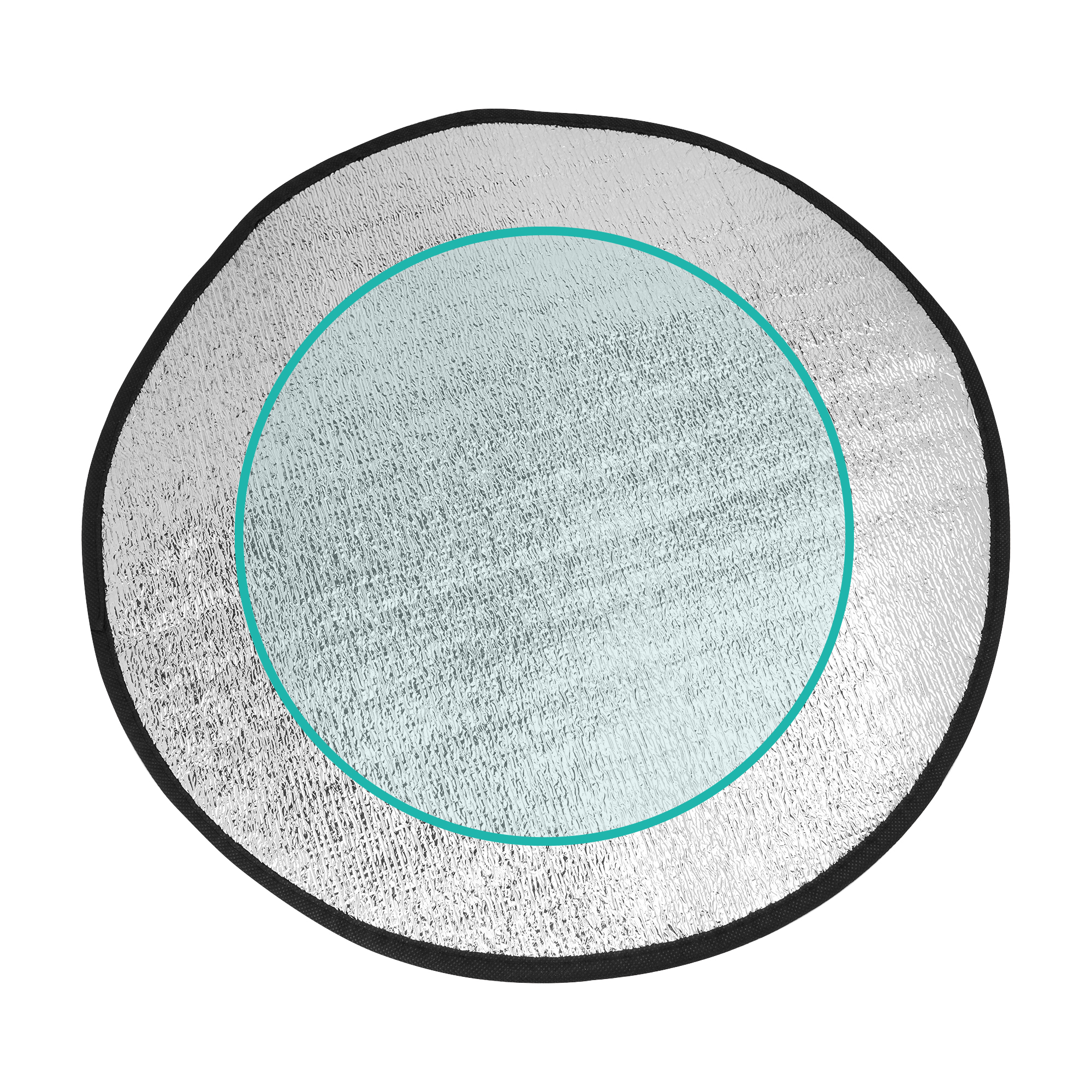 Cubre volante redondo con capa frontal de aluminio y parte trasera de espuma blanca. Ribete en color negro.