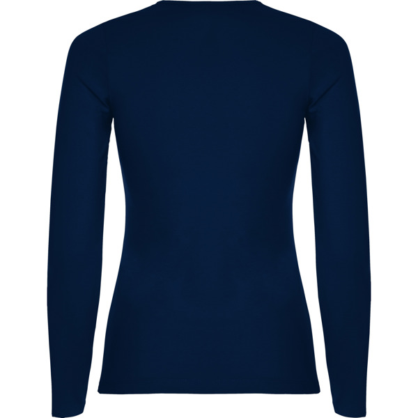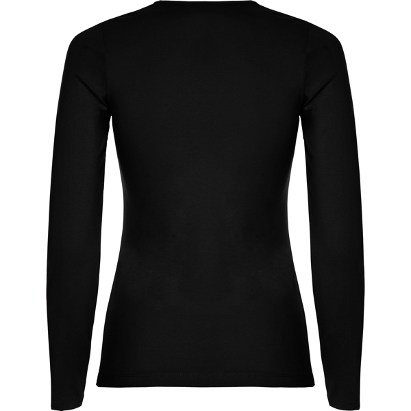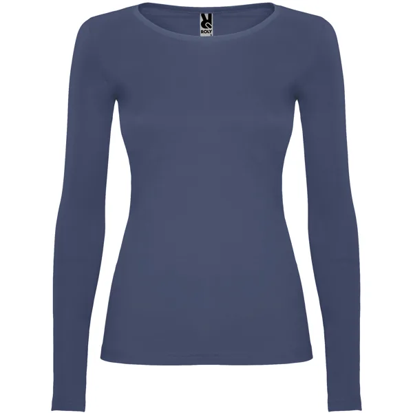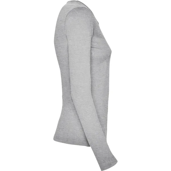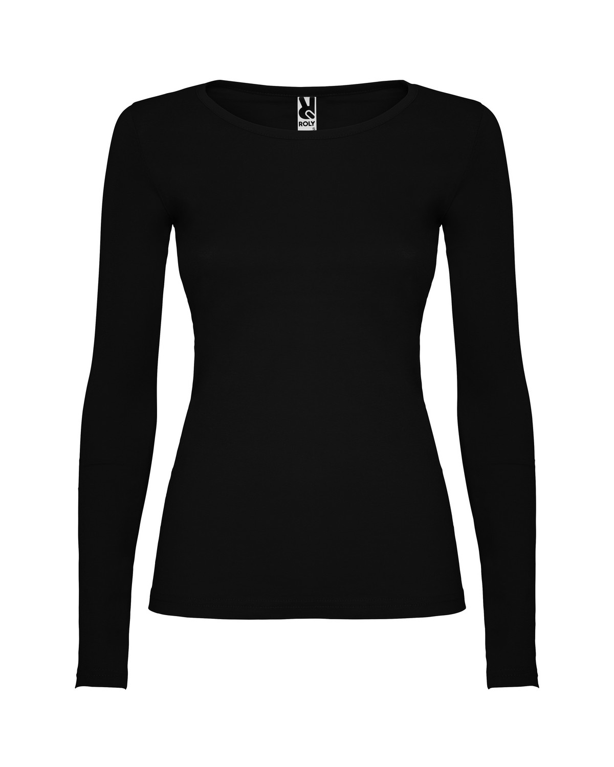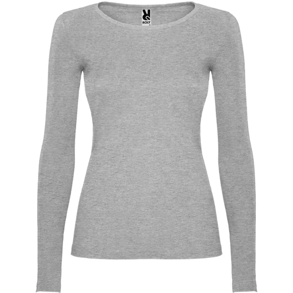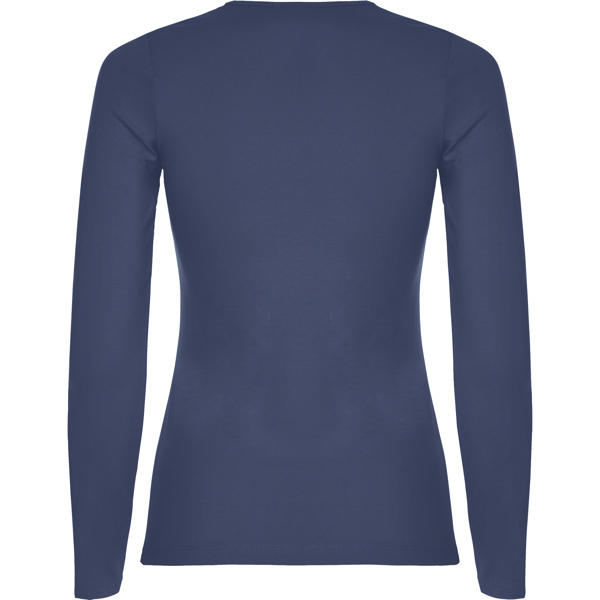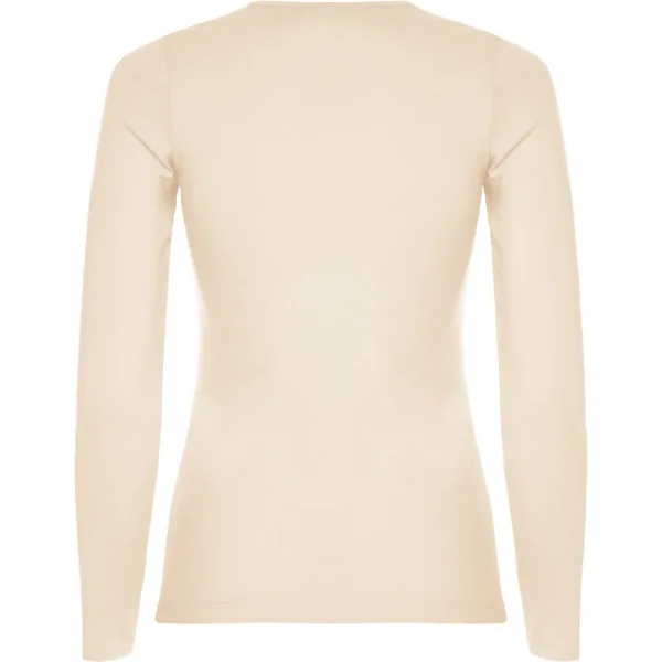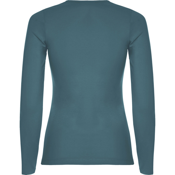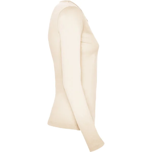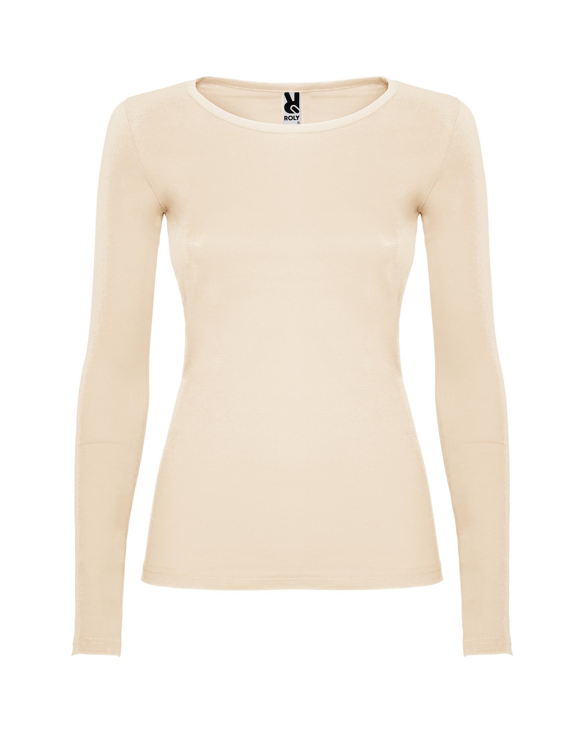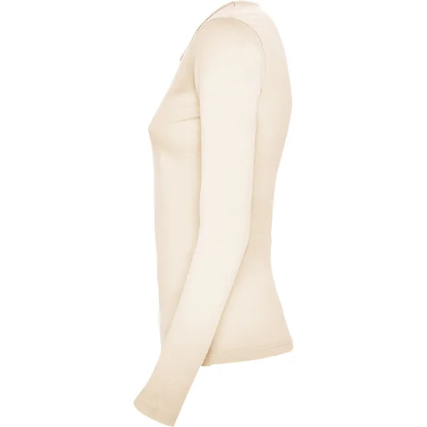 Camiseta de manga larga entallada en cintura. Cuello redondo con ribete del mismo tejido.