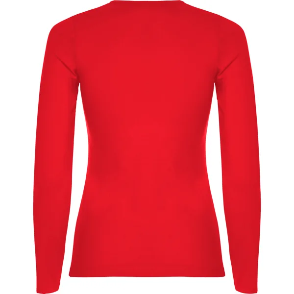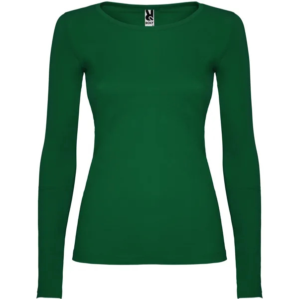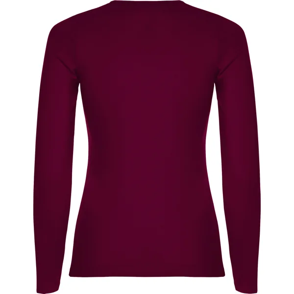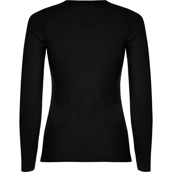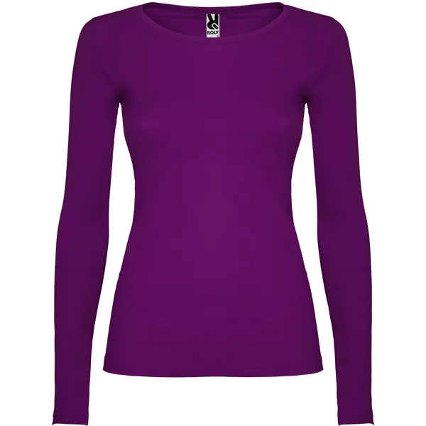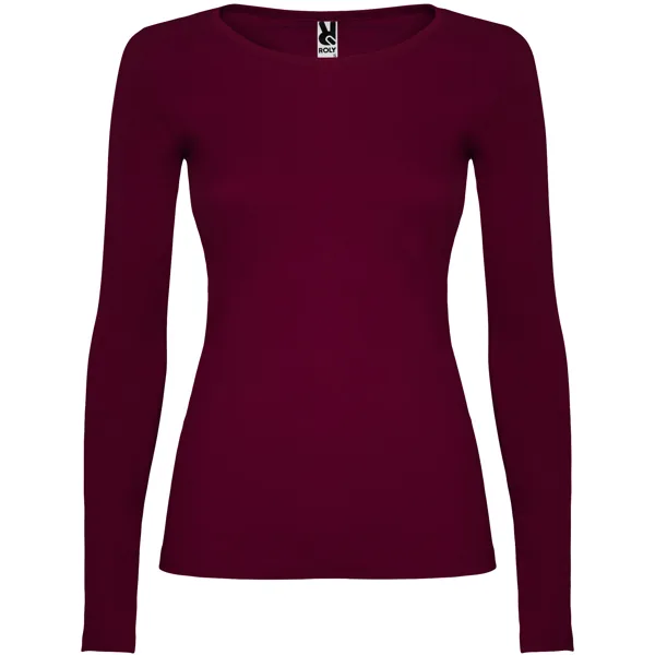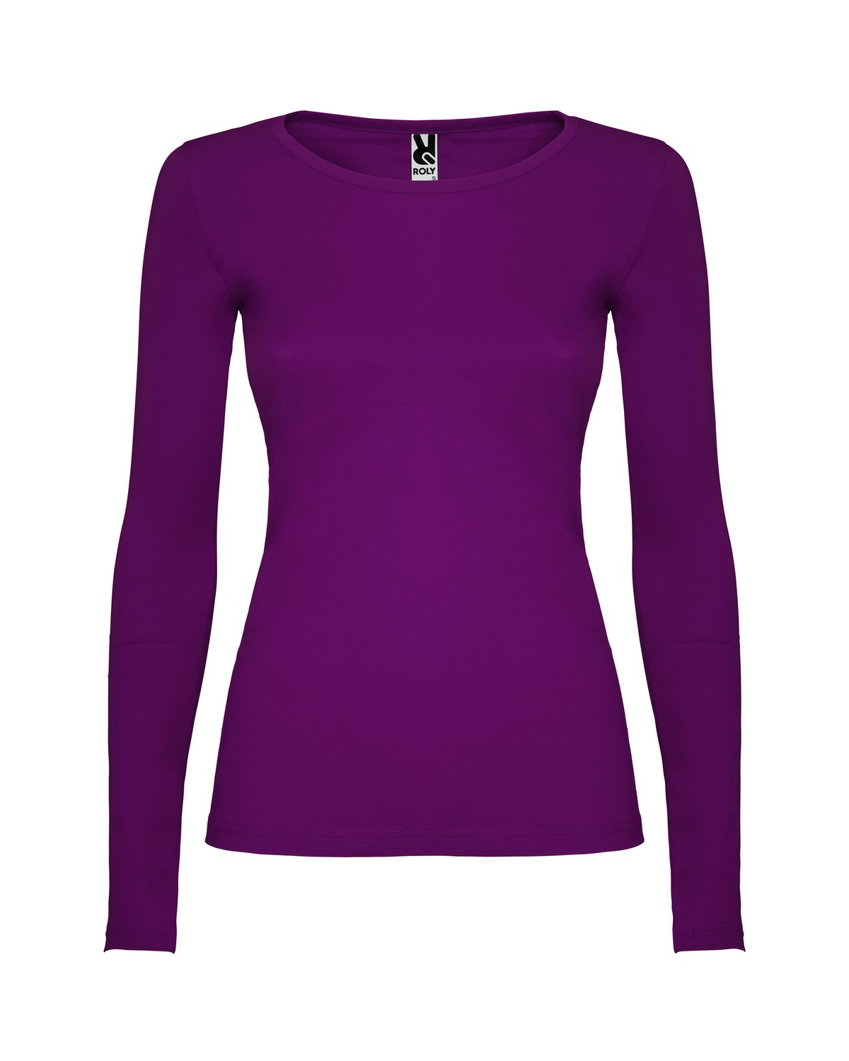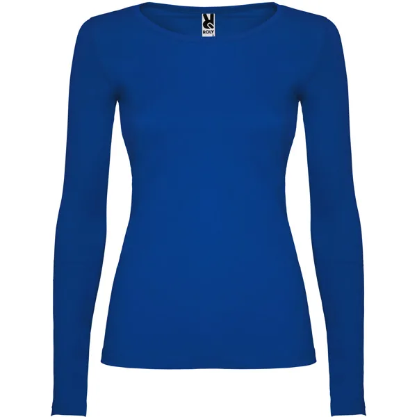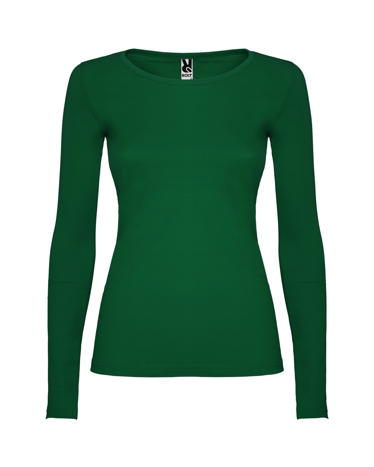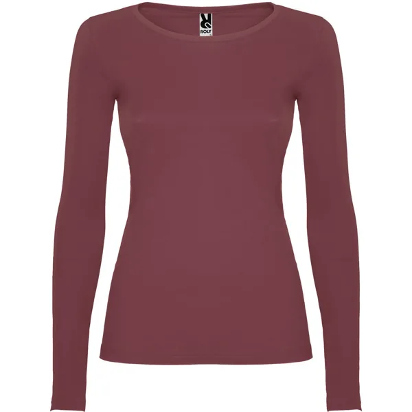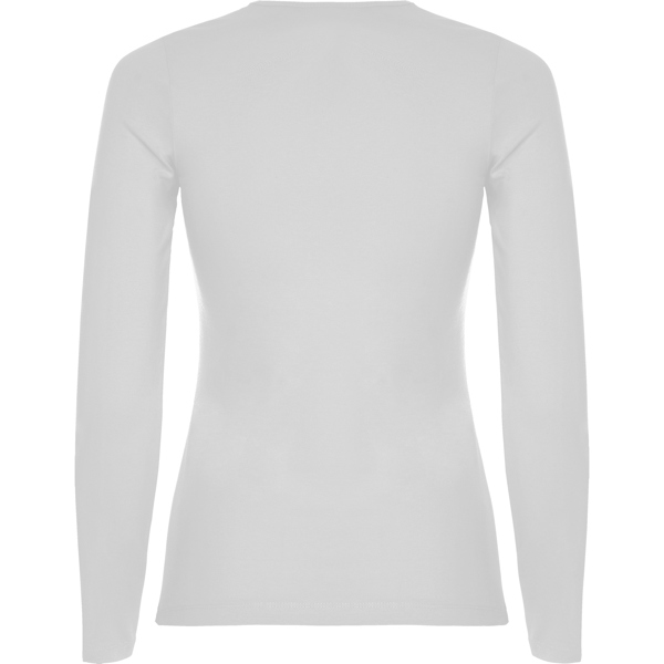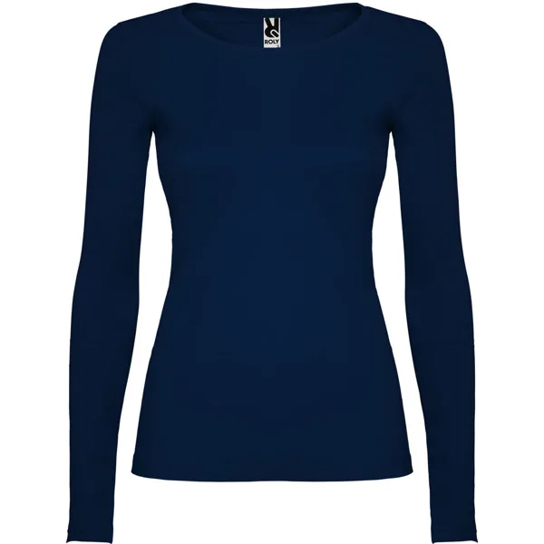 Camiseta de manga larga entallada en cintura. Cuello redondo con ribete del mismo tejido.