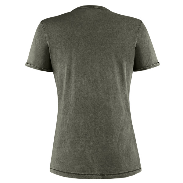 Camiseta de manga corta ligeramente entallada en cintura efecto lavado. Algodón peinado. Cuello redondo en canalé 1×1. Cubrecosturas en cuello del mismo tejido. Costuras dobles en laterales y sisas. Costuras decorativas en mangas y bajo y detalle de costuras de refuerzo en dobladillos.