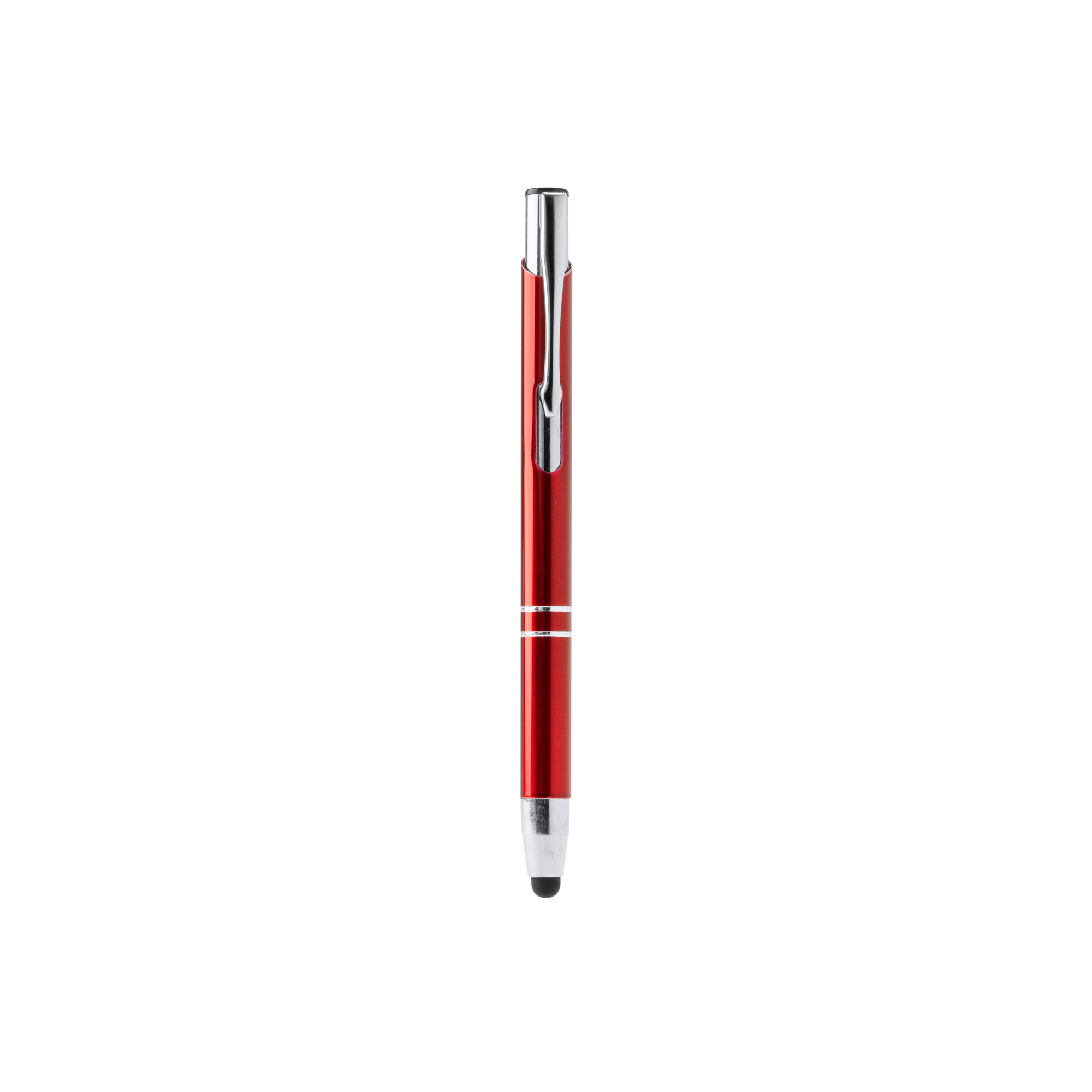Bolígrafo con cuerpo de aluminio y pulsador en acabado cromado. Puntero táctil y carga jumbo de tinta azul. Disponible en varios colores.