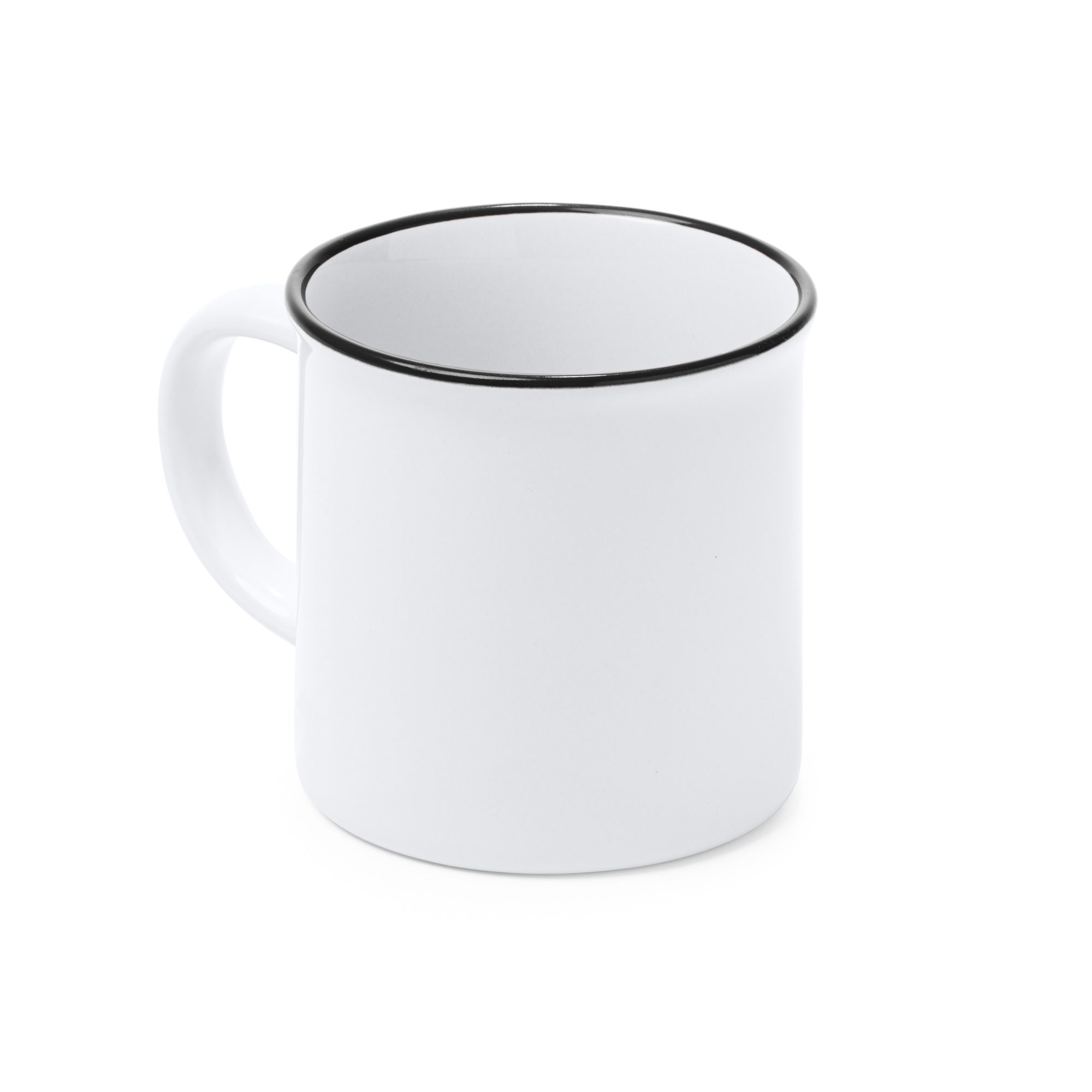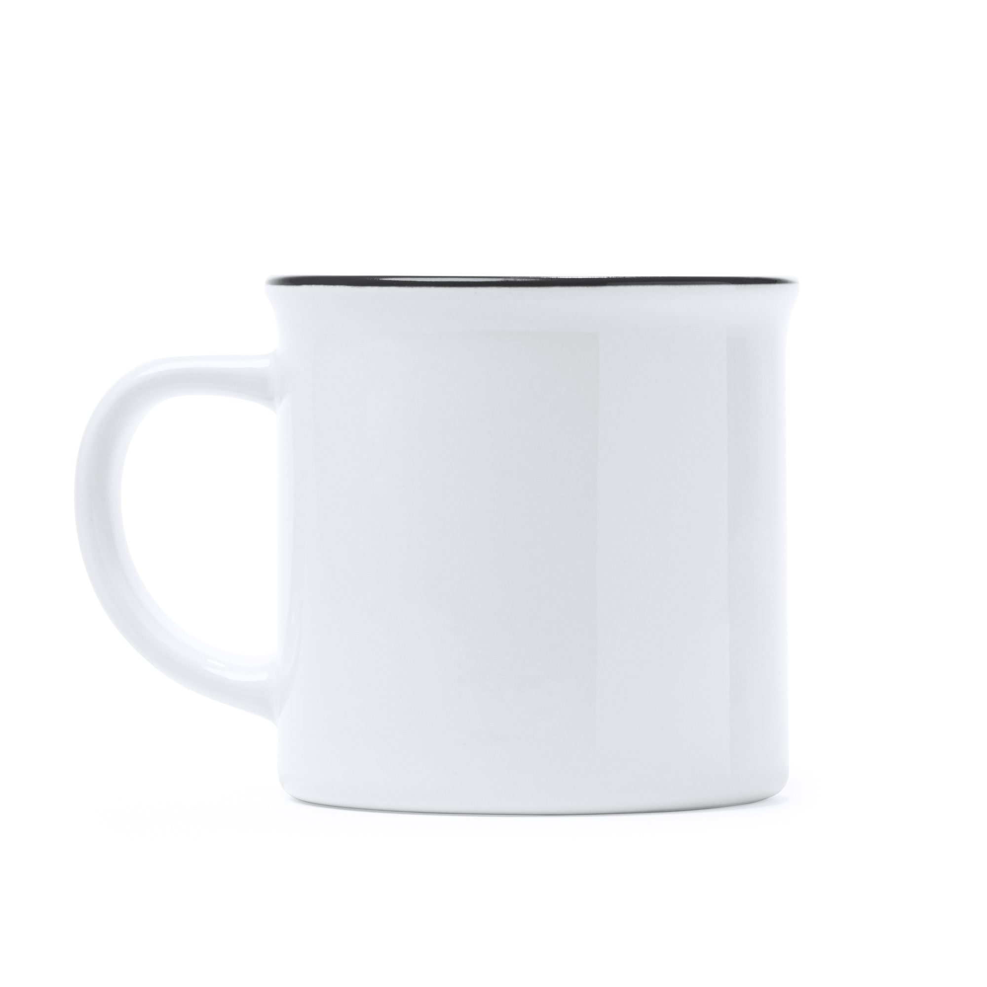 Taza de cerámica con diseño retro especial para sublimar con tu diseño favorito. Capacidad de 300 ml. Cuenta con el borde a color, lo que le confiere un aspecto más retro y un asa en blanco, a conjunto del cuerpo.