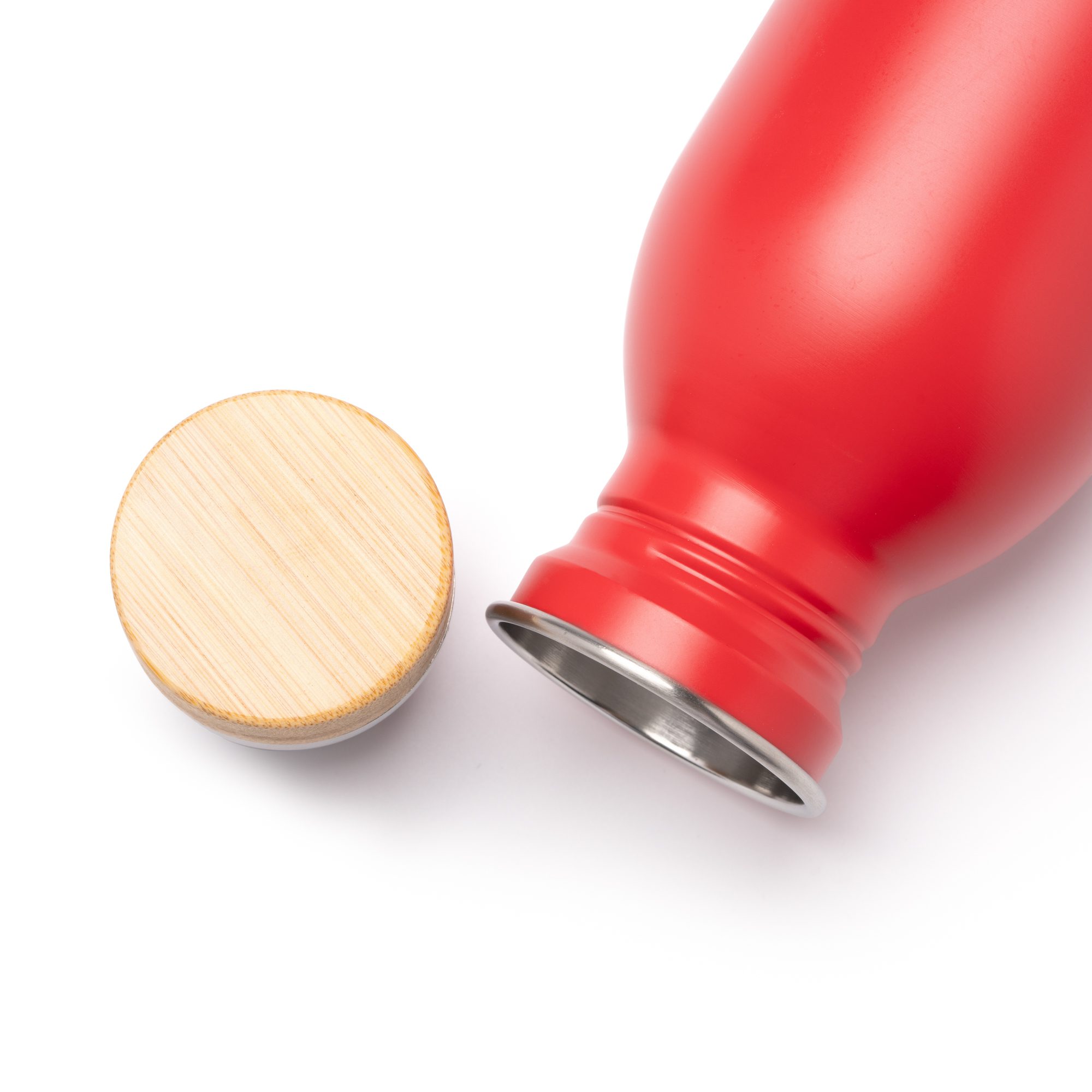 Bidón de acero inoxidable 304 reciclado de acabado mate con tapón de bambú. Capacidad de 650 ml