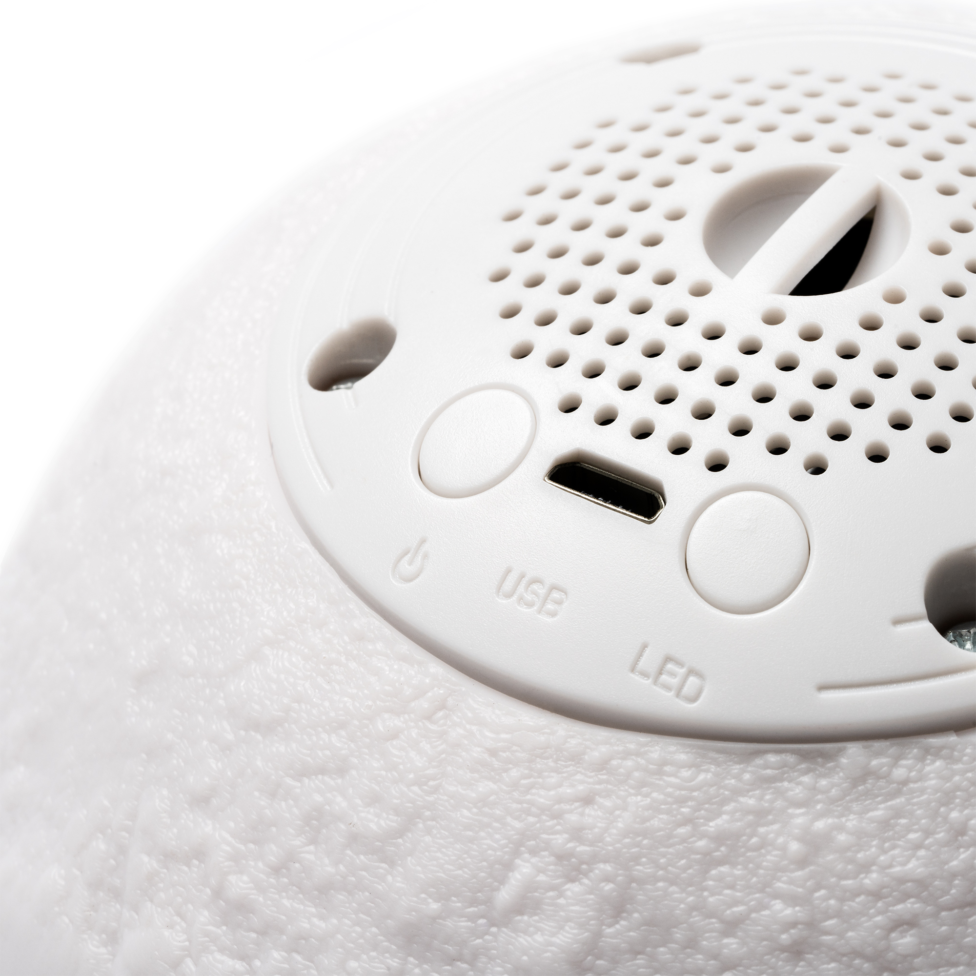Altavoz inalámbrico recargable de 3W con diseño lunar. Soporte realizado en madera. Función lámpara con diferentes modos de iluminación: luz cálida y luz fría.