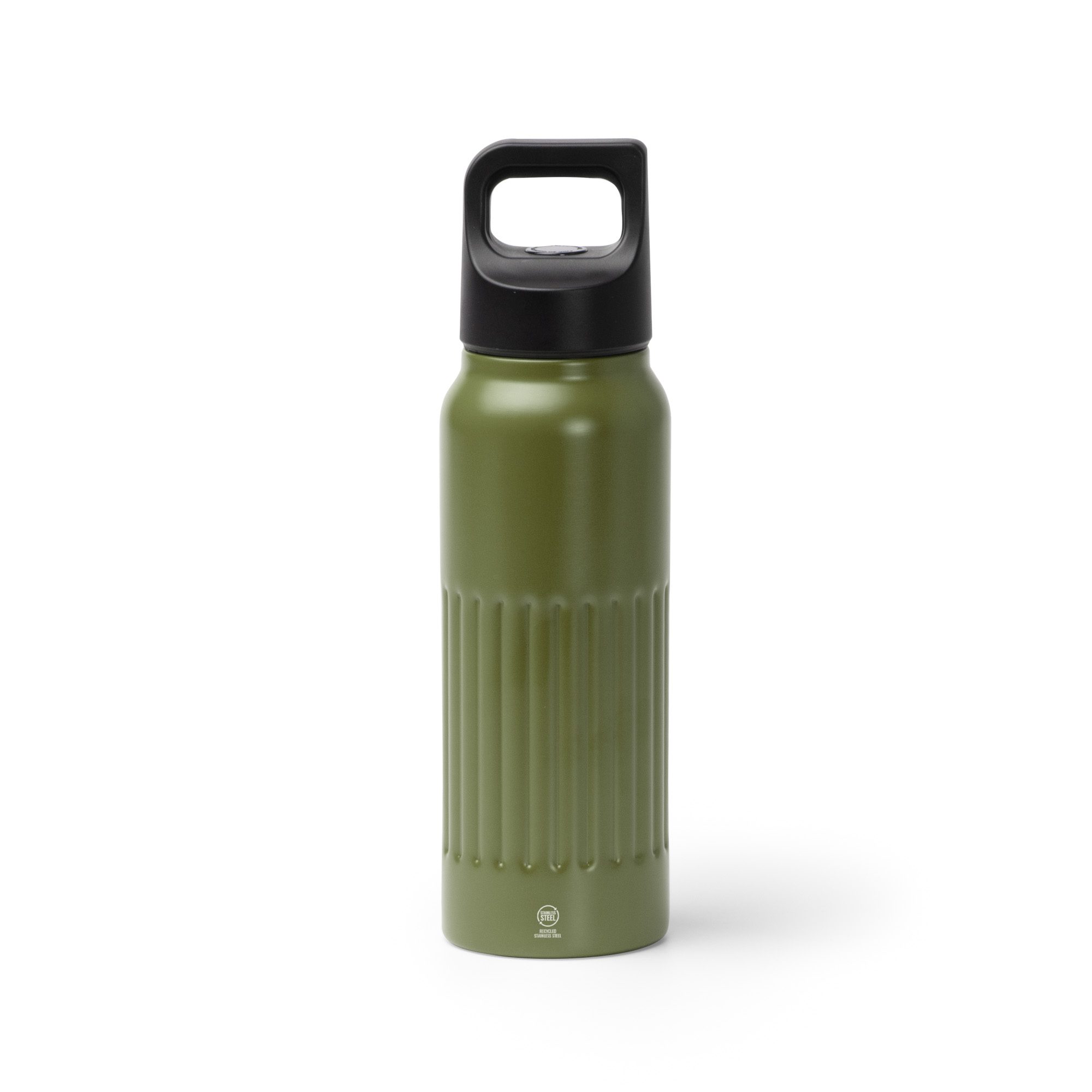 Bidón elaborado en acero inoxidable reciclado 304 de doble pared con superficie con parte inferior en diseño biselado. Con capacidad de 500 ml.