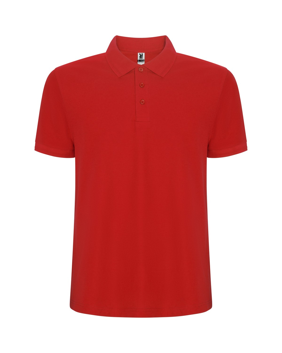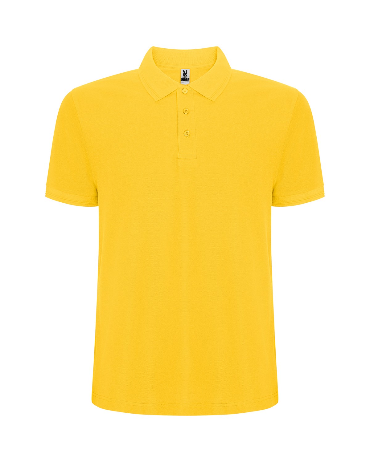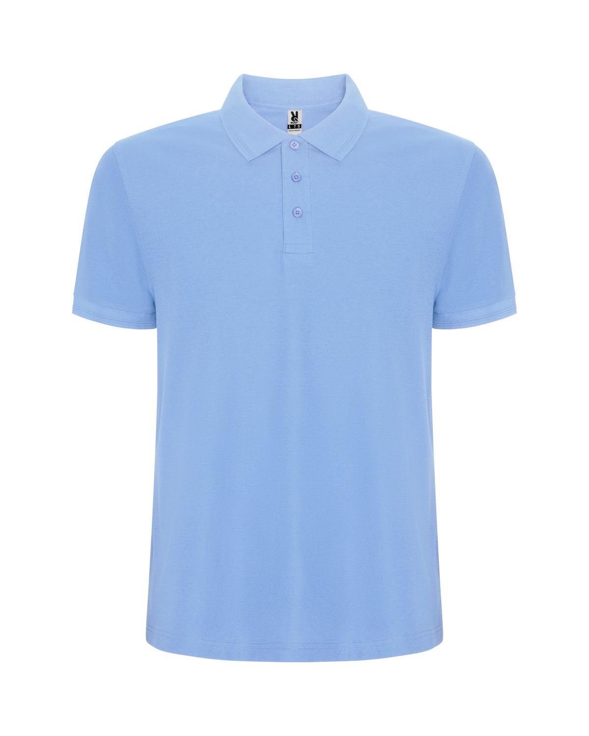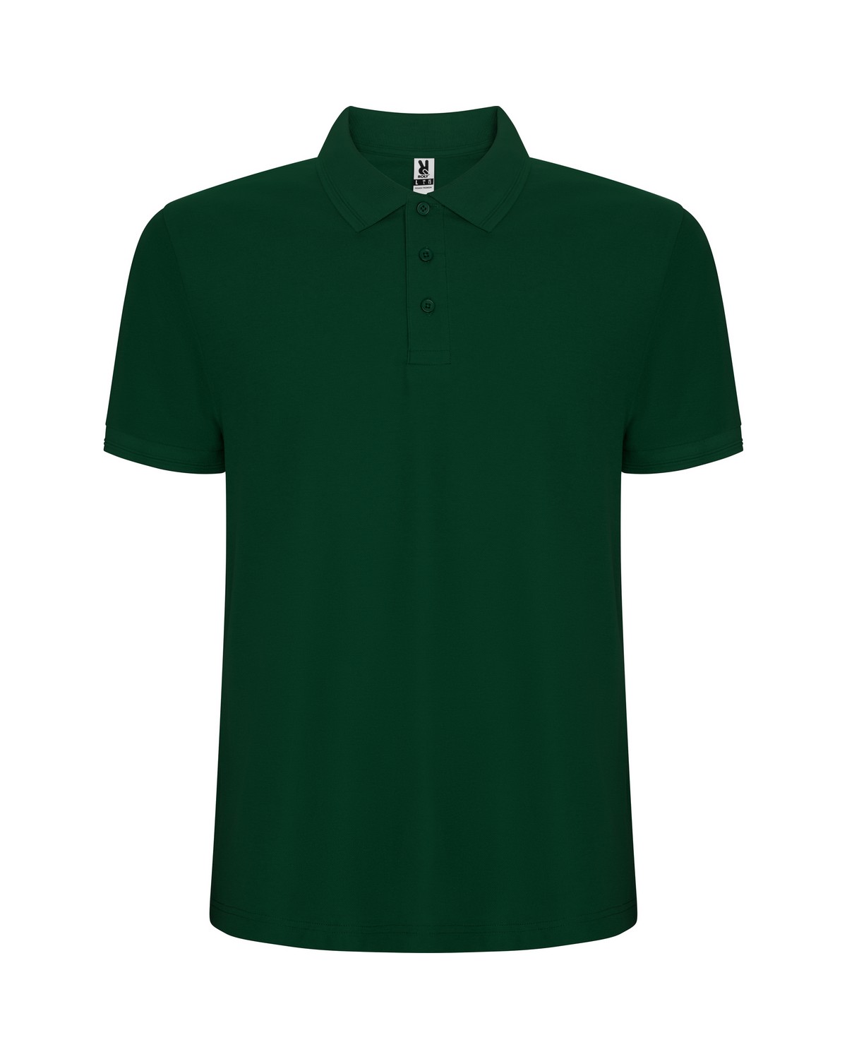 Polo de manga corta. Cuello y ribete de mangas en canalé 1×1 con detalle en relieve. Tapeta con 3 botones. Cubrecosturas reforzado en cuello. Aperturas laterales y bolsillo opcional.