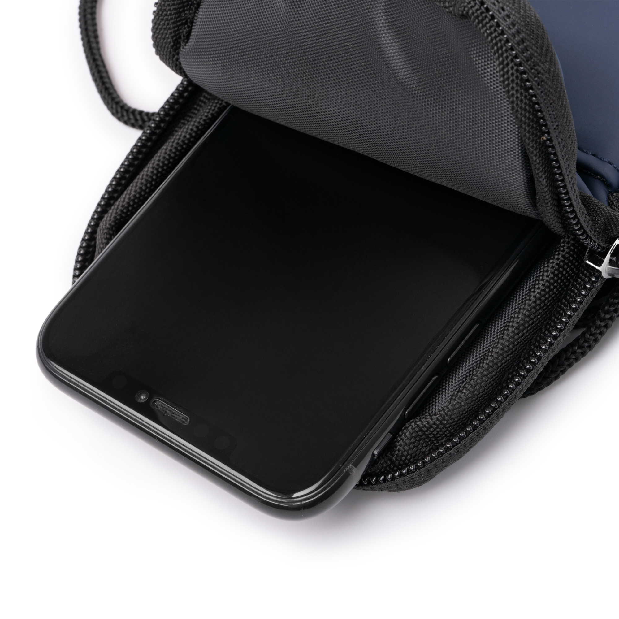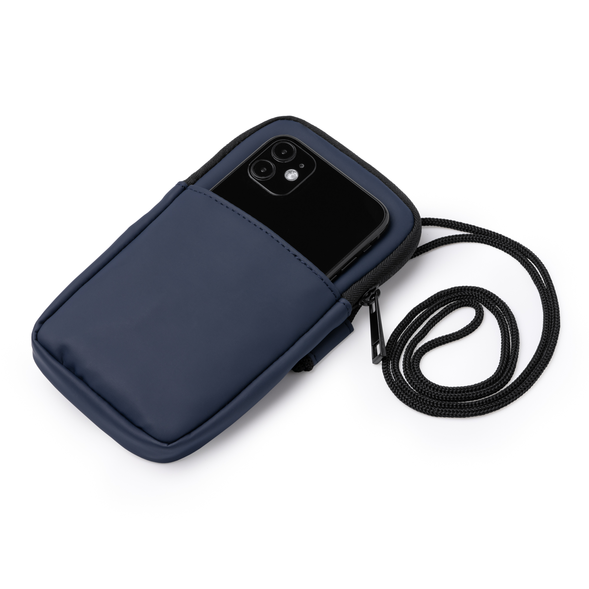 Portamóvil realizado en PU Leather. Cuenta con un compartimento principal con cierre de cremallera, un bolsillo exterior y cinta de transporte ajustable para mayor versatilidad de transporte.