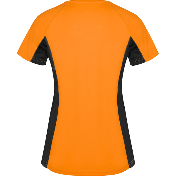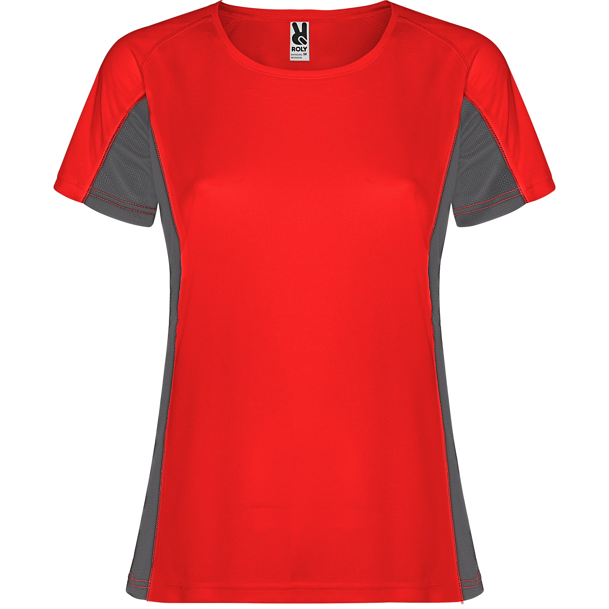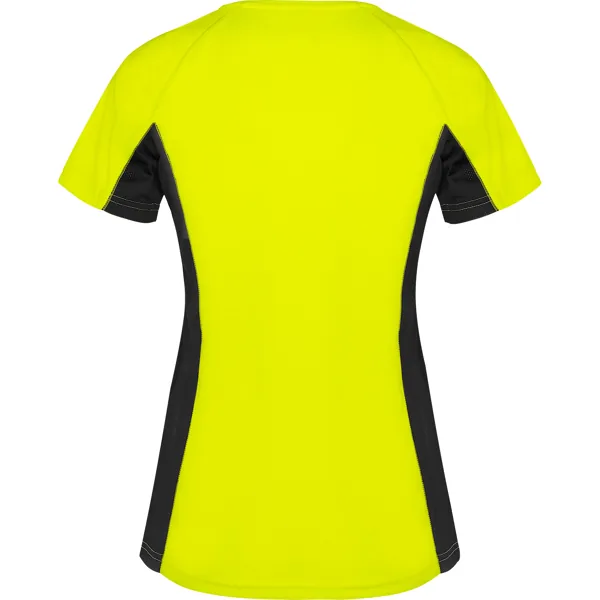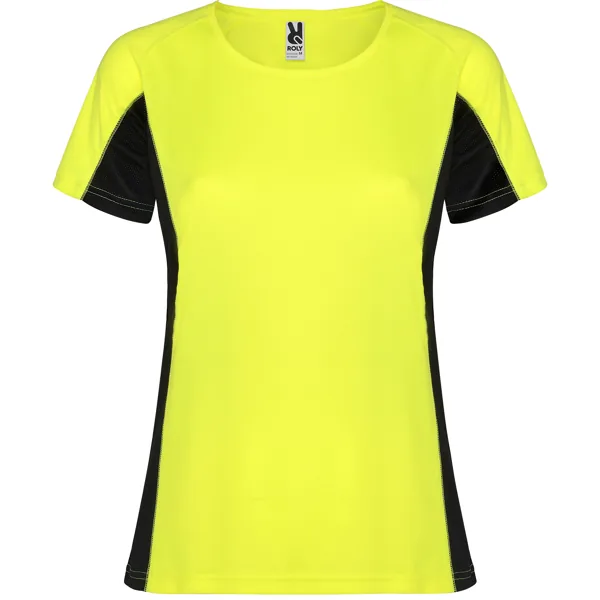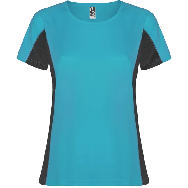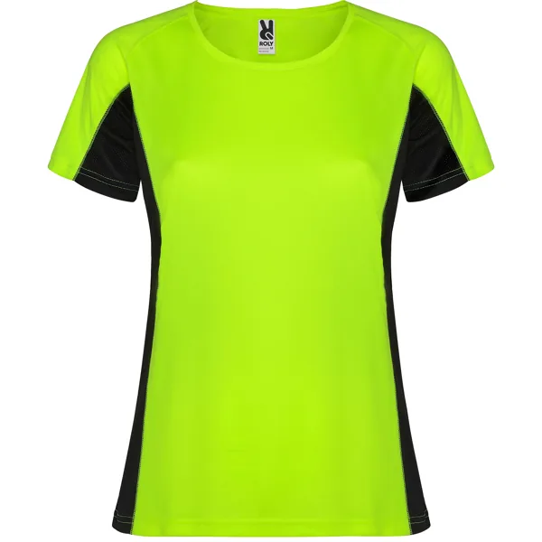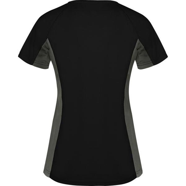 Camiseta técnica manga corta entallada transpirable bicolor. Paneles laterales en tejido microperforado. Cuello redondo y cubrecosturas del mismo tejido al tono.