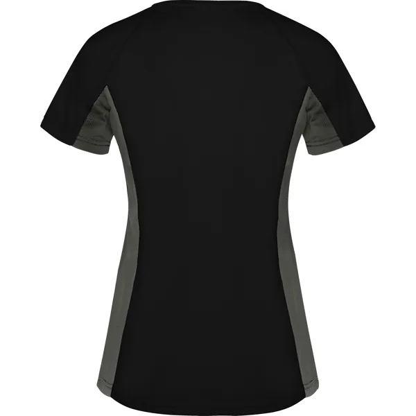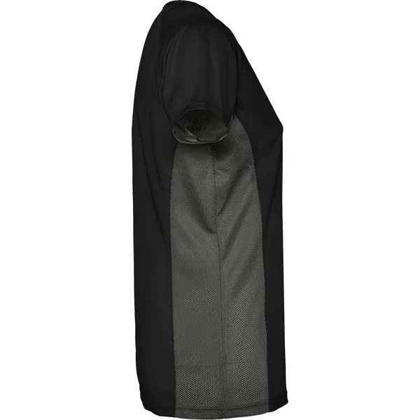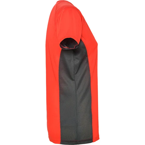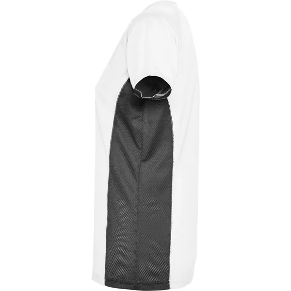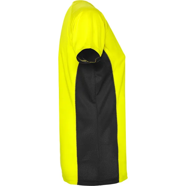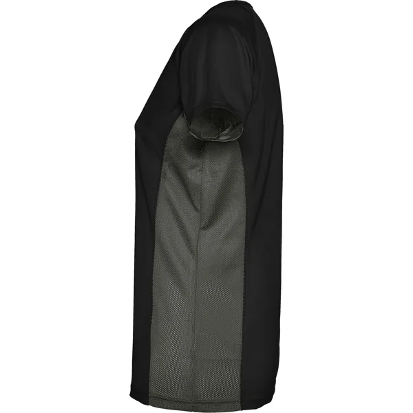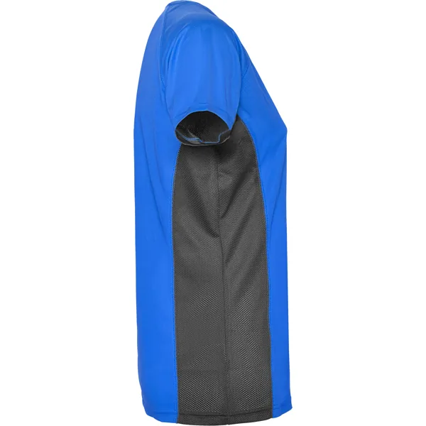 Camiseta técnica manga corta entallada transpirable bicolor. Paneles laterales en tejido microperforado.