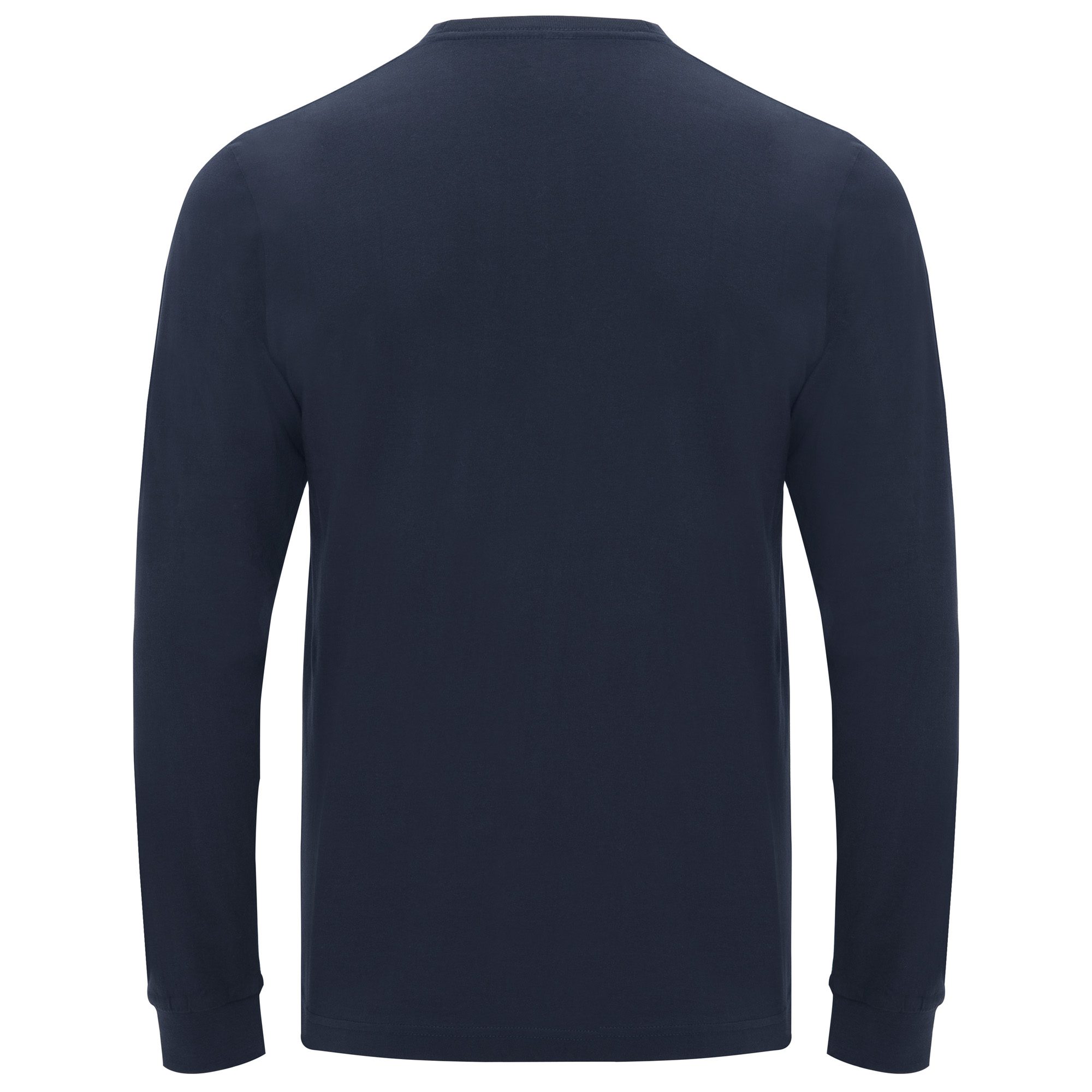 Camiseta de manga larga con costuras laterales. Cuello redondo y puños en canalé 1×1. Cubrecosturas en cuello del mismo tejido. Bolsillo en pecho izquierdo.