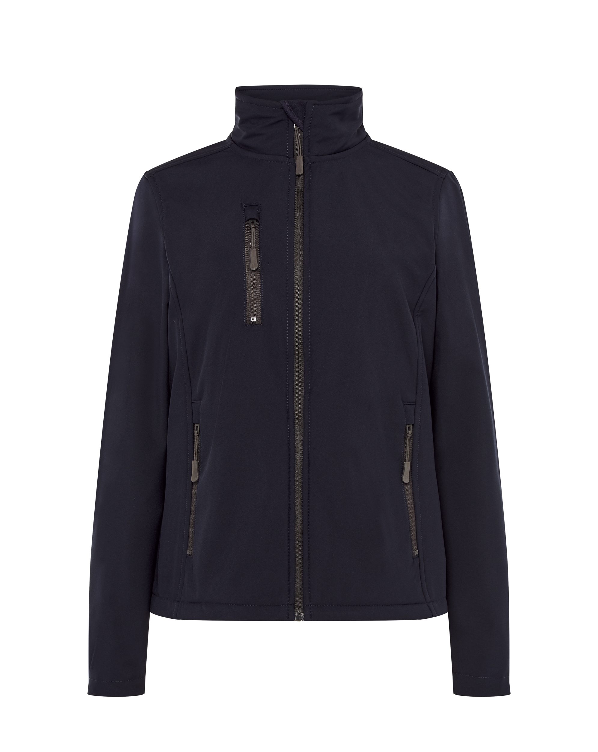 Chaqueta softshell para mujer, ligeramente entallada, con tejido interior de forro polar en el mismo tono. Tiene cremallera entera, 3 bolsillos laterales y 3 capas con membranas transpirables. Un complemento perfecto para el uniforme laboral cuando se trabaja en exteriores o para actividades al air