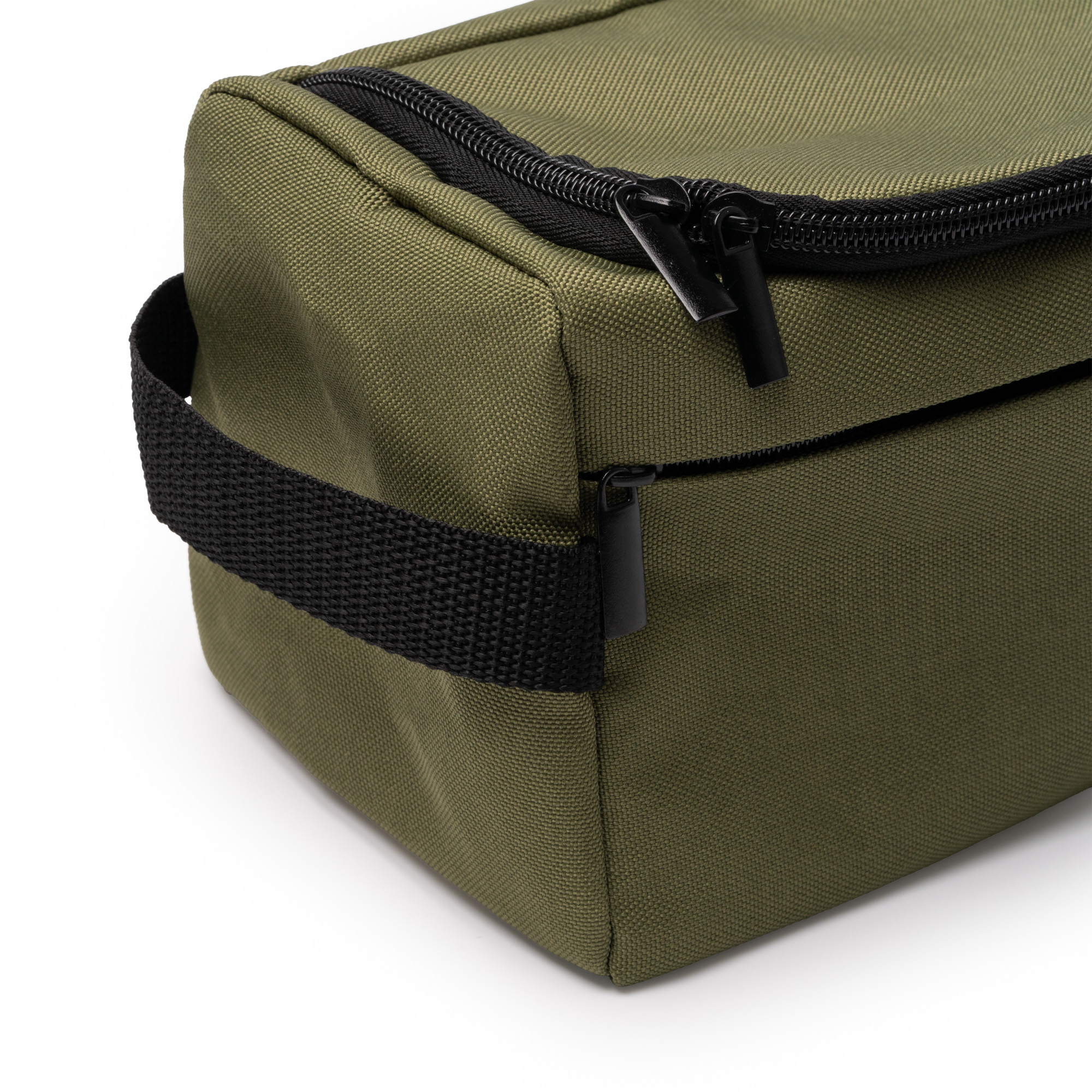Neceser elaborado en RPET 600D. En su compartimento principal cuenta con apertura en la parte superior con cierre de cremallera, que se despliega ofreciendo un bolsillo interior en tejido de rejilla con cierre de cremallera. En su exterior cuenta con un bolsillo frontal con cremallera invisible, ofreciendo un espacio de almacenamiento extra. Incorpora un asa de transporte en el lateral para hacer más cómodo su uso.