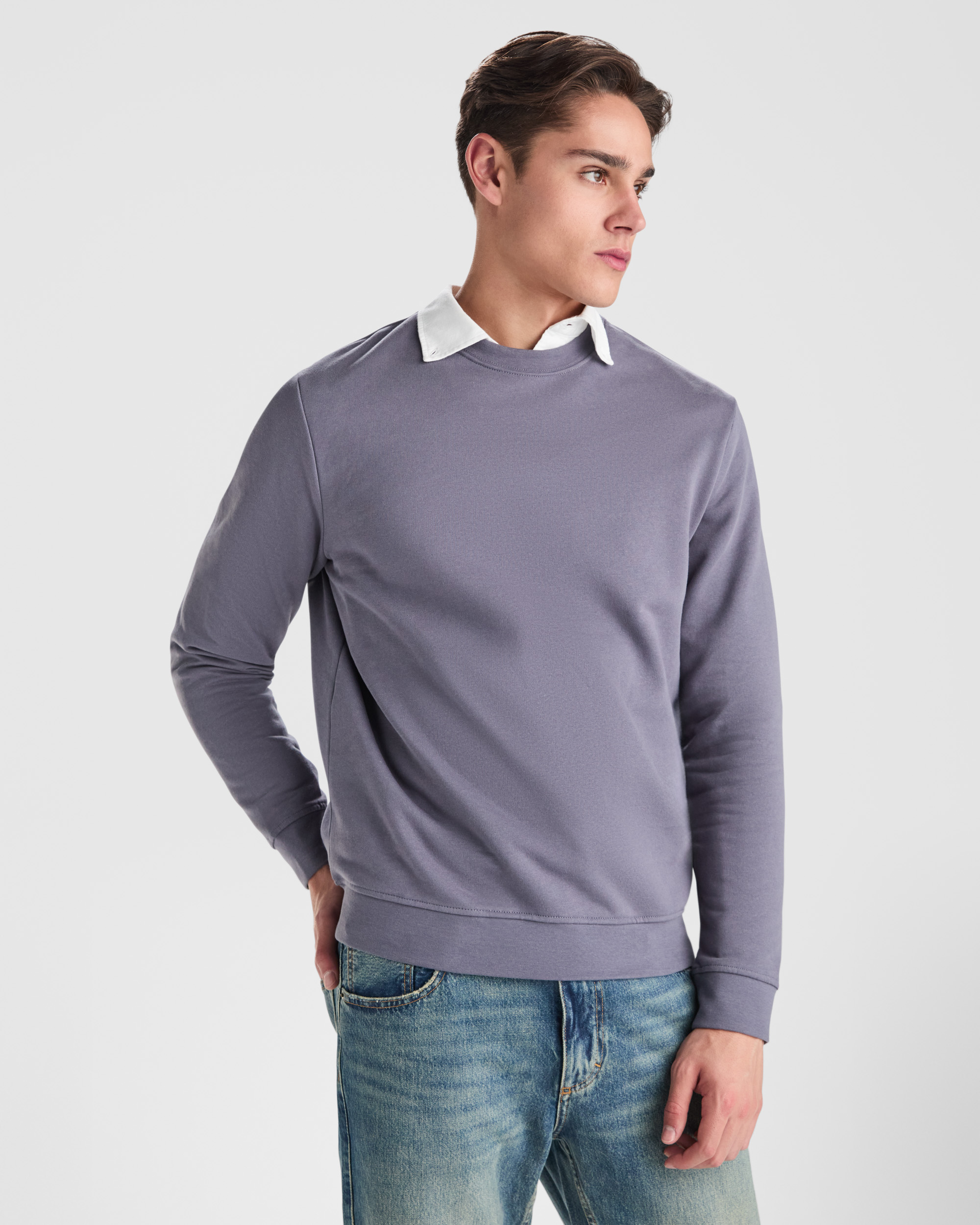 Sudadera unisex cuello redondo. Cuello, puños y cinturilla en canalé 2×1 con elastano.