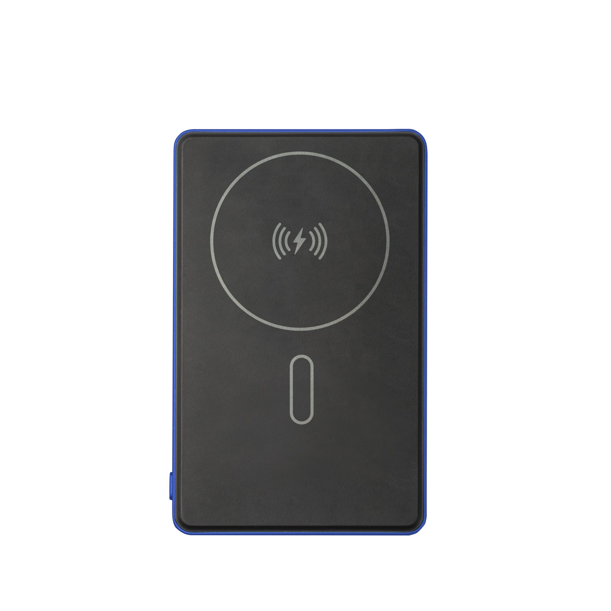 Batería externa magnética de 5000 mAh, elaborada en de aluminio reciclado. Con función de carga inalámbrica para dispositivos provistos de esta tecnología. Salida corriente inalámbrica de hasta 15W para Android y 7.5W para IOS. Cuenta con indicador luminoso de carga. Incluye cable tipo C y anillo magnético universal.