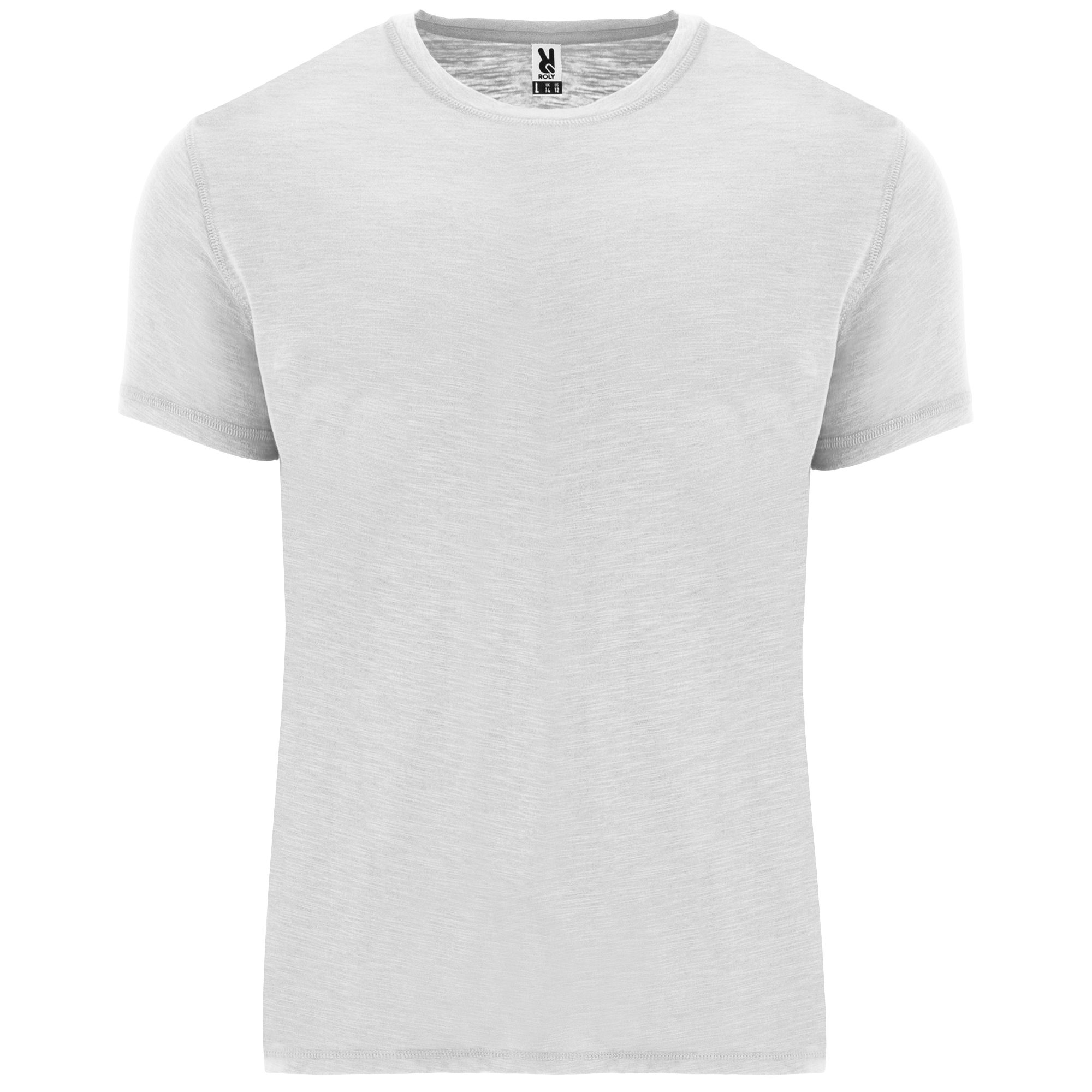 Camiseta de manga corta, en tejido vigoré inclinado. Cuello redondo del mismo tejido.