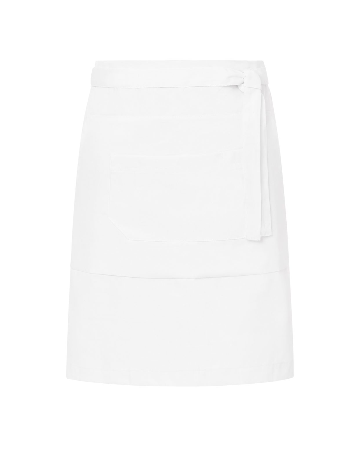 Delantal unisex de medio cuerpo.Dos cintas en la cintura. Bolsillo kanguro y bolsillo doble.