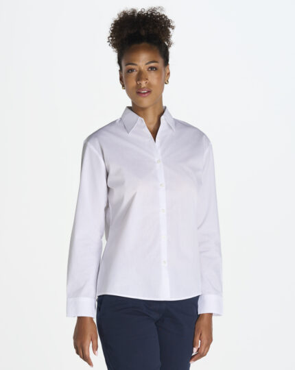 Camisa que repele agua y aceite. Entallada de manga larga, en popelín. Cuerpo ajustado. Botones a tono.