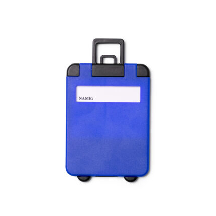 Identificador de maletas con forma de trolley. Tarjeta identificadora y cinta incluida.