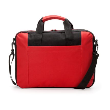 Portadocumentos acolchado para portátil elaborado en suave poliéster 600D con bolsillo exterior. Cuenta con asas de transporte con color a juego y cinta bandolera ajustable con mosquetón para hacer...