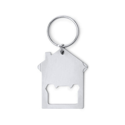 Llavero multiherramienta elaborado en acero inoxidable con diseño en forma de casa. Cuenta con funciones abridor, destornillador de estrella y plano en sus laterales, llave Allen de tamaños M3 y M4...