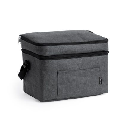 Nevera XL de poliéster reciclado RPET con diseño vigoré. Doble compartimento y bolsillo frontal para el almacenamiento de utensilios y alimentos más pequeños.