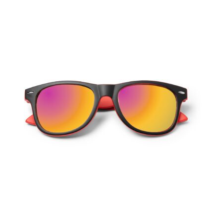 Gafas de sol de diseño clásico con montura bicolor y lentes de espejo. Protección UV400.