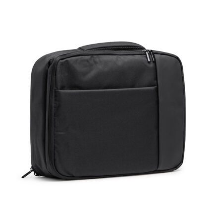 Mochila ejecutiva de viaje realizada en poliéster 300D. Dos bolsillos principales acolchados con compartimentos interiores y bolsillos ideales para portátil 15" y Tablet.