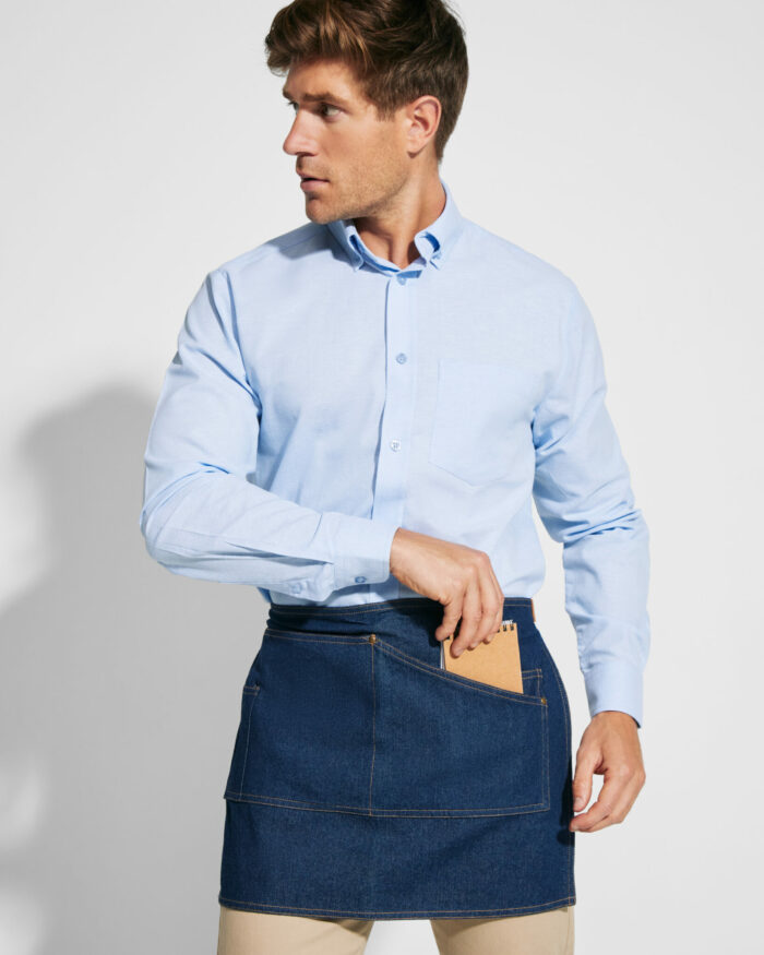Delantal corto en tejido vaquero.