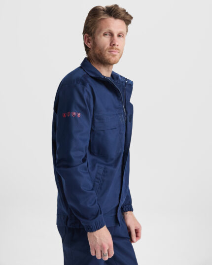 Chaqueta en tejido resistente ignífugo. · Cremallera frontal con solapa y velcro.