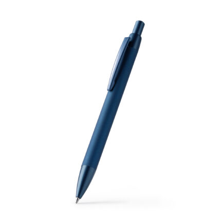 Bolígrafo elaborado en aluminio reciclado con pulsador y clip. Cuenta con cuerpo con efecto goma que le confiere una sensación suave y agradable al tocarlo.