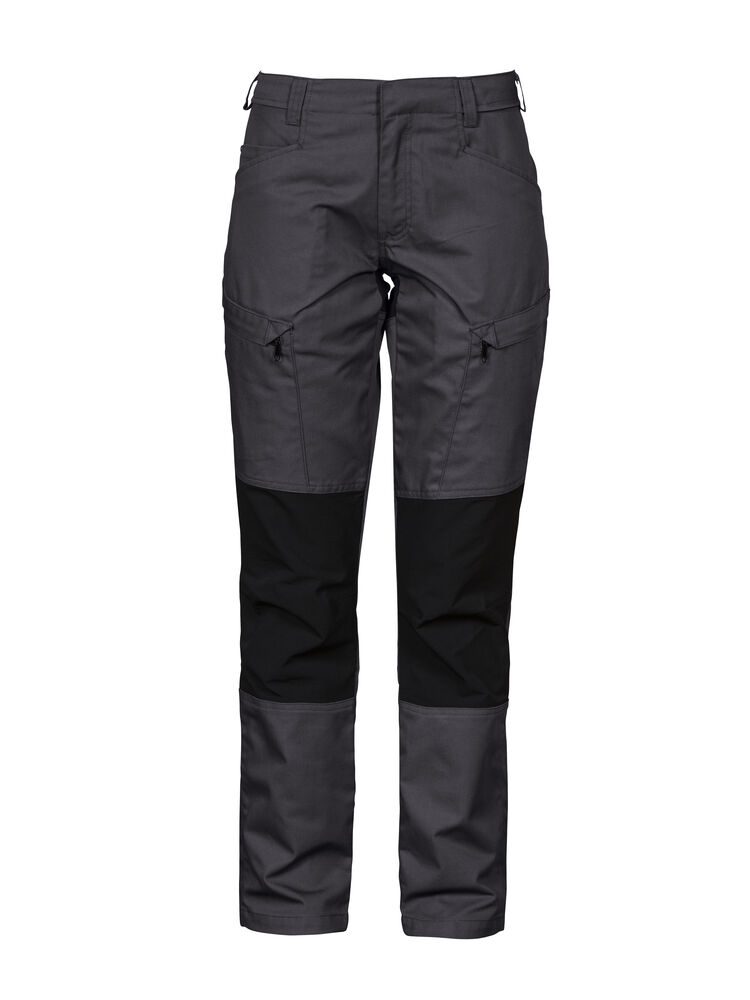 Pantalón de cintura con gran flexibilidad. Tejido elástico en la zona trasera, la entrepierna y las rodillas para proporcionar una mayor libertad de movimientos. Bolsillos en las piernas con cremallera, el izquierdo con bolsillo interno para el móvil y en el lado derecho bolsillo con enganche para tarjeta identificativa. Trabilla más ancha en la espalda para evitar la presión del cinturón. Bolsillos traseros con solapa y cierre de velcro. Fijación oculta para bolsillos tipo funda (ref. artículo 9042). Botón oculto en la parte delantera. El pantalón se puede alargar 5 cm descosiendo la costura roja del bajo.