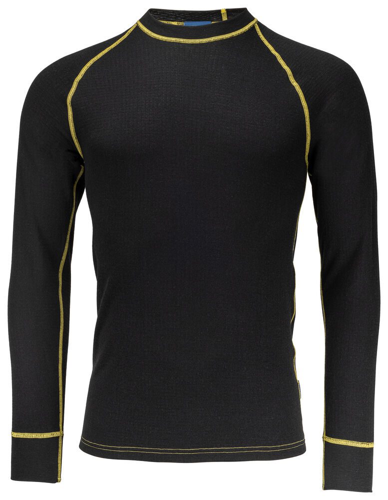 Térmica con cuello redondo en lana Merino que mantiene el cuerpo cálido y seco en condiciones climáticas frías. Tejido suave y elástico para una mayor libertad de movimientos. Espalda alargada. Puños en mangas.