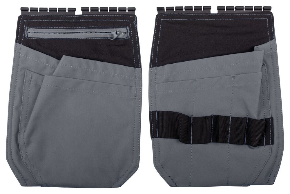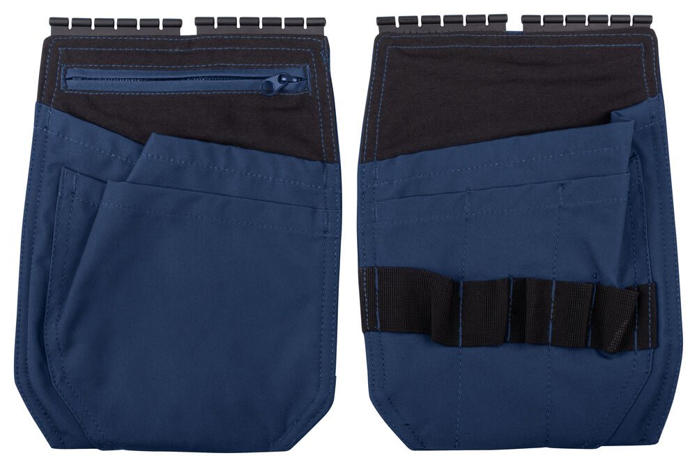 Bolsillos de funda que se adaptan a los pantalones PROJOB provistos de raíles de riel. Los bolsillos están reforzados con Cordura® para una mayor durabilidad. Uno con bolsillos adicionales, ambos abiertos y uno con cierre de cremallera. El otro con bolsillos abiertos y trabillas para herramientas. Posibilidad de ajustar el pantalón en función de las necesidades, utilizar ambos bolsillos portaherramientas o sólo uno de ellos.