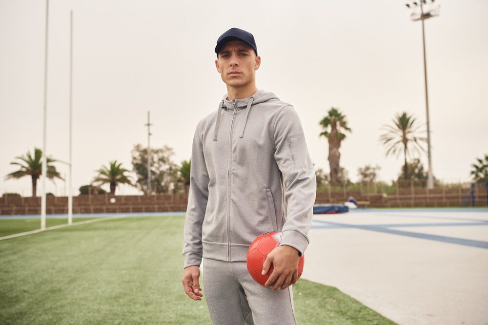 Sudadera técnica spun dyed, cremallera entera a tono, dos bolsillos frontales con cremallera y un bolsillo con cremallera en manga. Cordón plano en capucha, tapeta herringbone y canalé en puños y cintura. Bolsillo con solución para auriculares. De fácil re etiquetado.