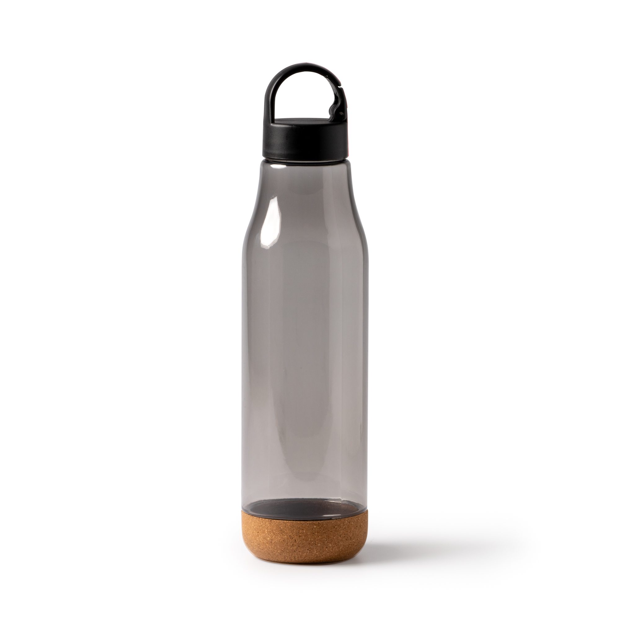 Botella con cuerpo de RPET y base de corcho. Asa de transporte con función mosquetón en la tapa, para facilitar su transporte. Capacidad 720 ml. Su base de corcho evita el deslizamiento del bidón en superficies. Una opción ligera y práctica para el transporte de bebidas y líquidos.