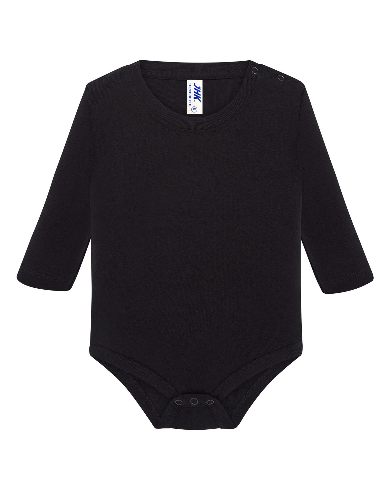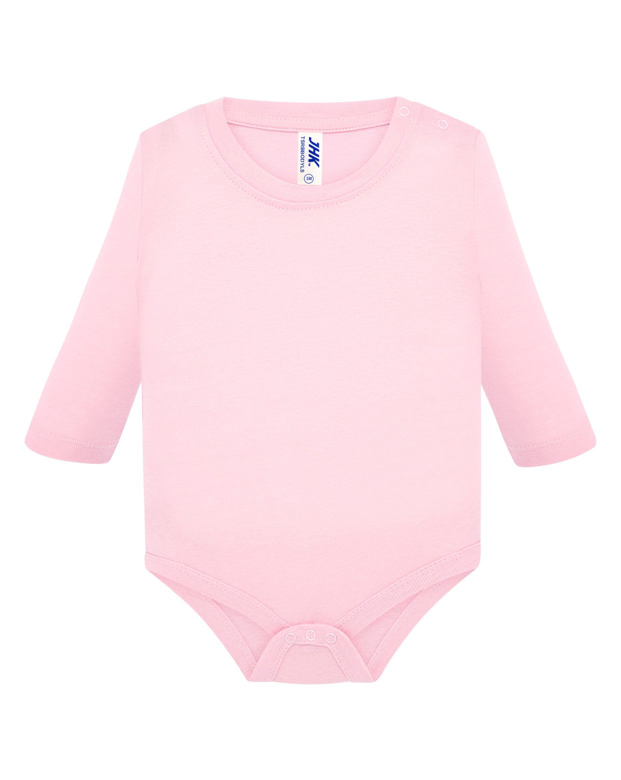 Body para bebé unisex de manga larga, 100% algodón. Ideal para personalizar con serigrafía, vinilo o transfer. Disponible en 5 colores y desde la talla 3 meses hasta los 18 meses. Etiqueta removible.