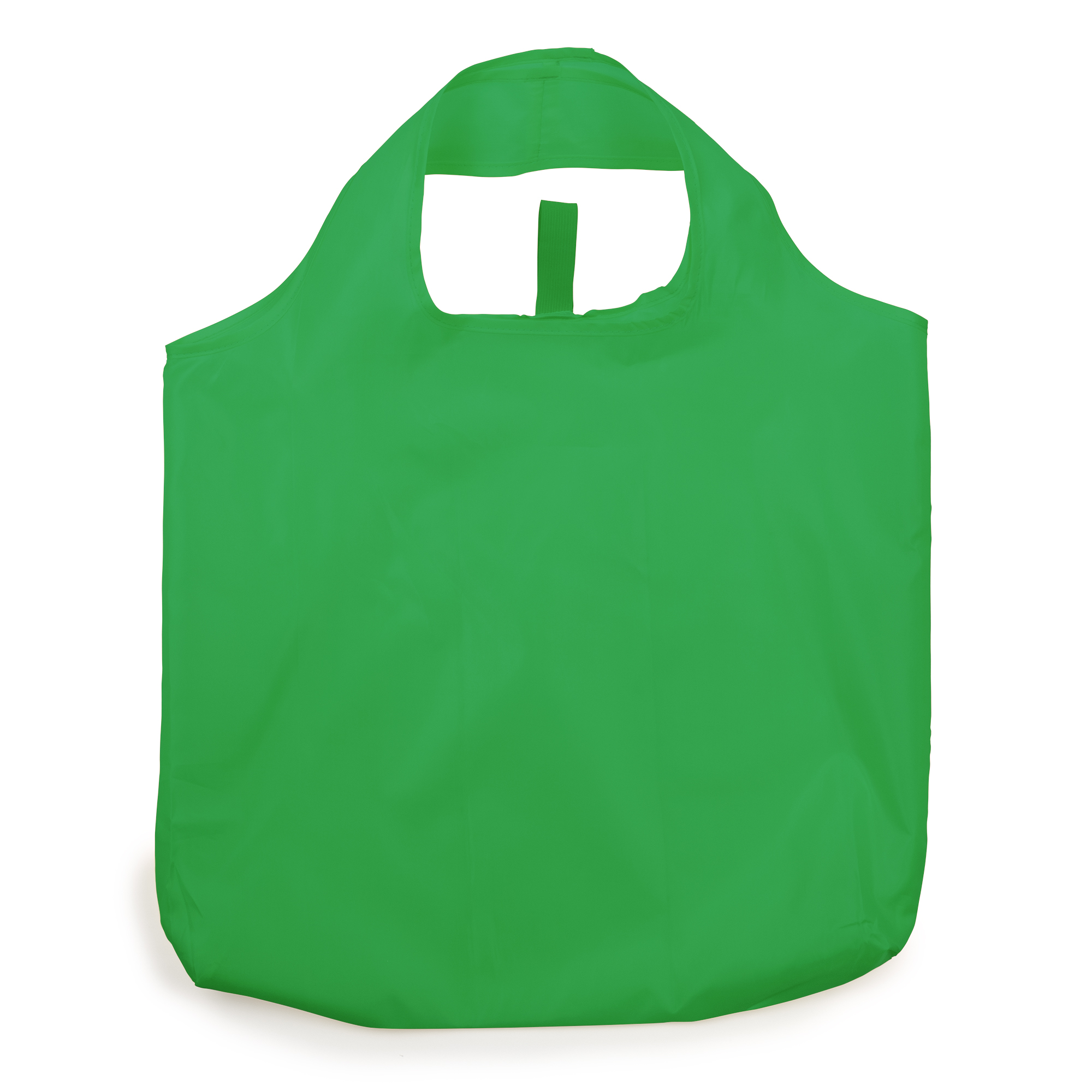 Bolsa de la compra plegable en suave poliéster 190T en acabado cosido. Incluye práctico elástico para plegado.
