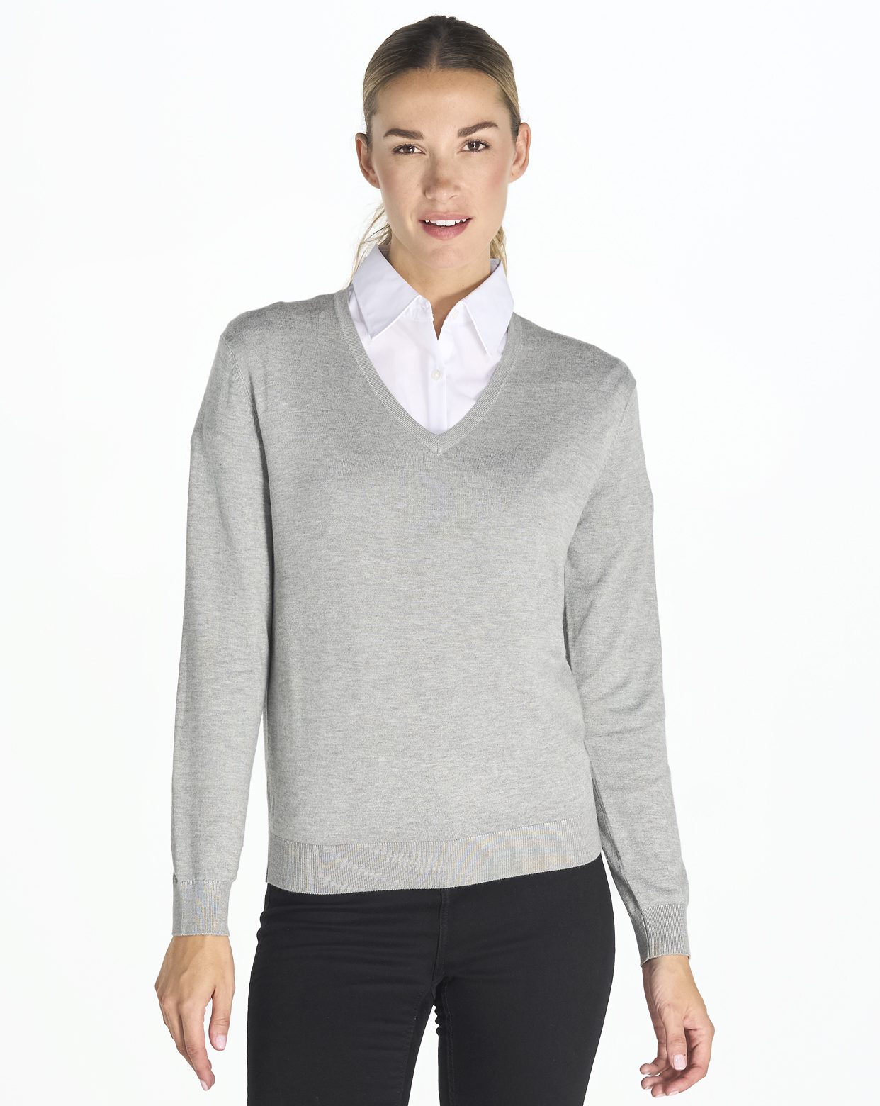 Jersey de mujer de cuello pico. Corte entallado.